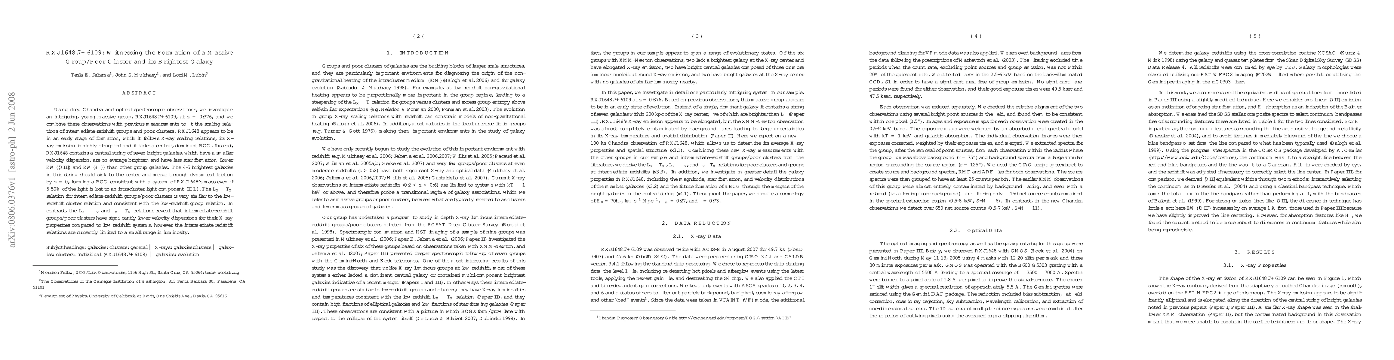 Using deep Chandra and optical spectroscopic observations, we investigate an intriguing, young massive group, RXJ1648.7+6109, at z=0.376, and we combine these observations with previous measurements to fit the scaling relations of intermediate-redshift groups and poor clusters. RXJ1648 appears to be in an early stage of formation; while it follows X-ray scaling relations, its X-ray emission is highly elongated and it lacks a central, dominant BCG. Instead, RXJ1648 contains a central string of seven bright galaxies, which have a smaller velocity dispersion, are on average brighter, and have less star formation (lower EW([OII]) and EW(H_delta)) than other group galaxies. The 4-5 brightest galaxies in this string should sink to the center and merge through dynamical friction by z=0, forming a BCG consistent with a system of RXJ1648's mass even if 5-50% of the light is lost to an intracluster light component (ICL). The L_X-T_X relation for intermediate-redshift groups/poor clusters is very similar to the low-redshift cluster relation and consistent with the low-redshift group relation. In contrast, the L_X-sigma_v and sigma_v-T_X relations reveal that intermediate-redshift groups/poor clusters have significantly lower velocity dispersions for their X-ray properties compared to low-redshift systems, however the intermediate-redshift relations are currently limited to a small range in luminosity.
