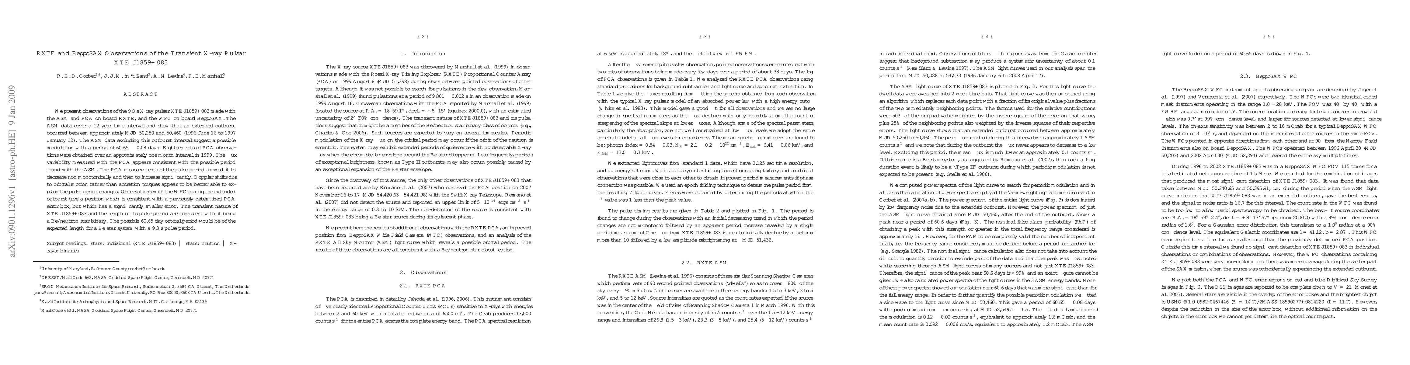 The paper presents RXTE and BeppoSAX observations of the X-ray pulsar XTE J1859+083, revealing an extended outburst from 1996 to 1997. ASM data suggest a possible 60.65-day modulation, supported by PCA flux variability. PCA measurements show non-monotonic pulse period changes, attributed to orbital Doppler shifts. WFC observations refine the source position. The transient nature and pulse period imply a Be/neutron star binary with an expected orbital period for such a system.