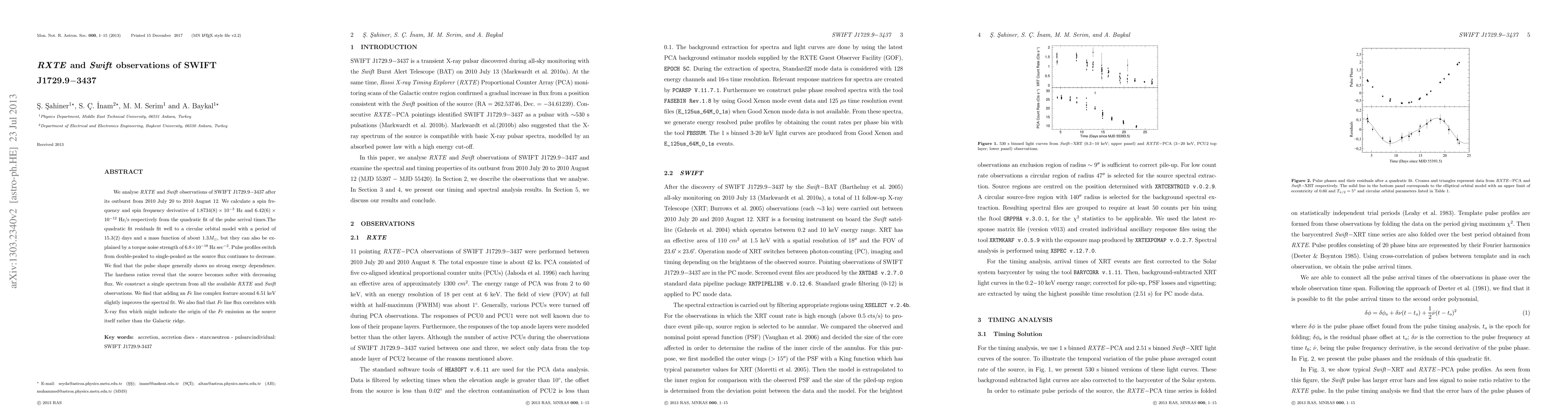 Researchers analyzed data from X-ray telescopes to study SWIFT J1729.9-3437's behavior during an outburst, finding its spin frequency and pulse shape changes with decreasing flux, while also identifying a possible iron line feature in the spectrum.