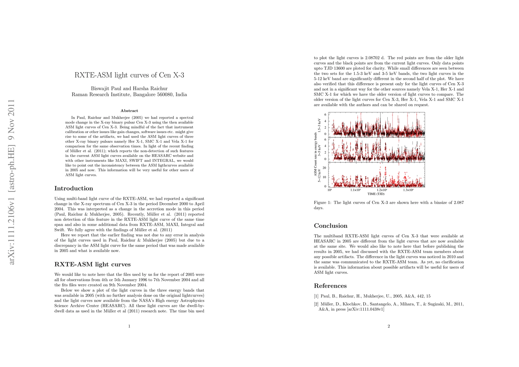 Researchers compared ASM light curves of Cen X-3 from 2005 with current data to note inconsistency between the two sets, highlighting importance for future users of ASM light curves.