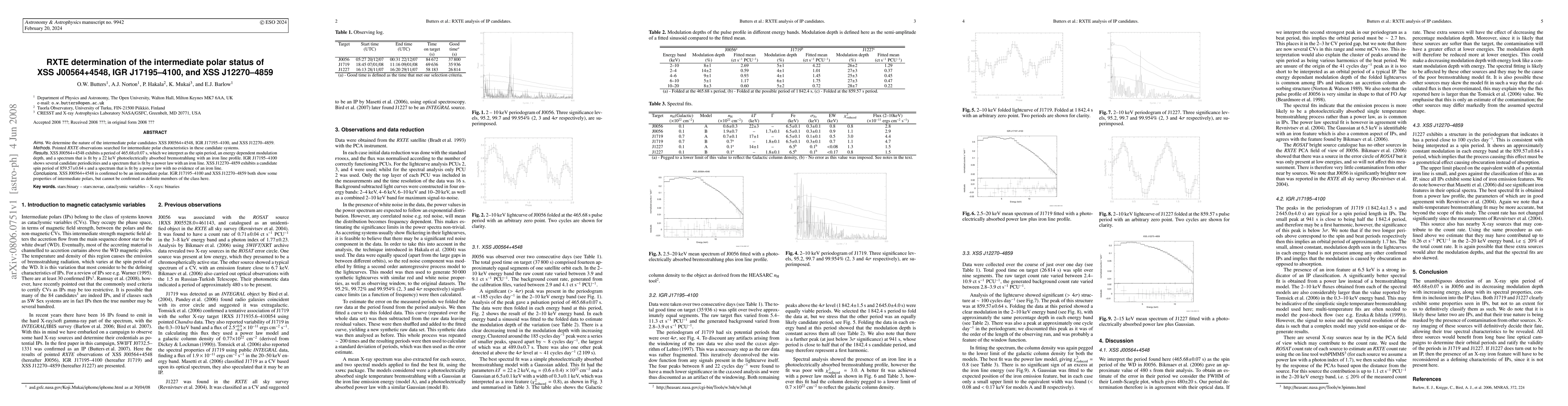 Briefly described pointed RXTE observations to search for intermediate polar characteristics in candidate systems