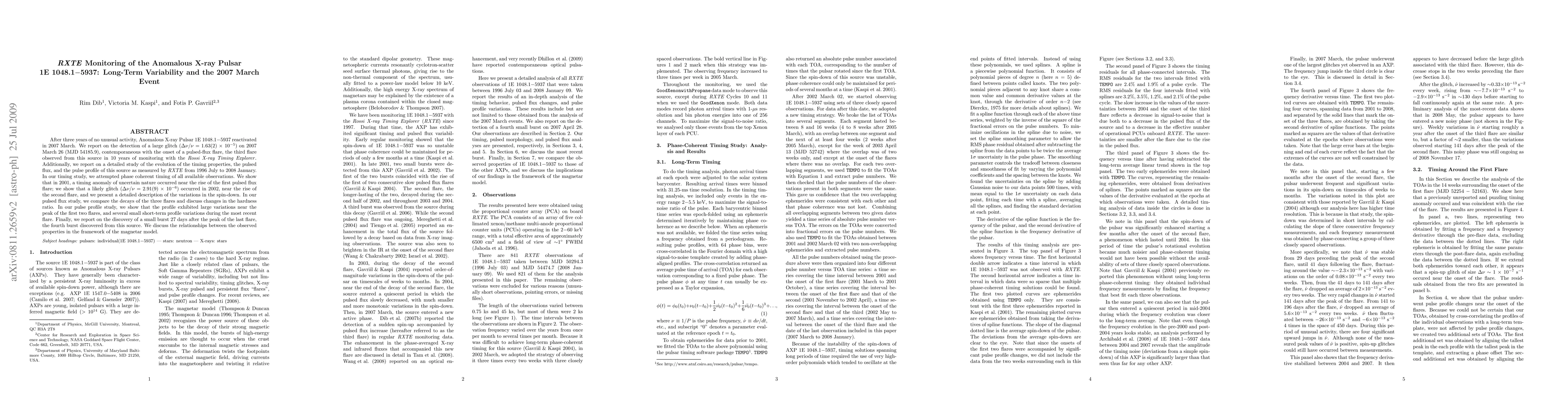 This paper reports on the long-term variability of the Anomalous X-ray Pulsar 1E 1048.1-5937, highlighting a significant glitch and pulsed-flux flare in March 2007, and detailing the evolution of its timing properties, pulsed flux, and pulse profile from 1996 to 2008. The study also discusses the relationships between these observed properties within the context of the magnetar model.