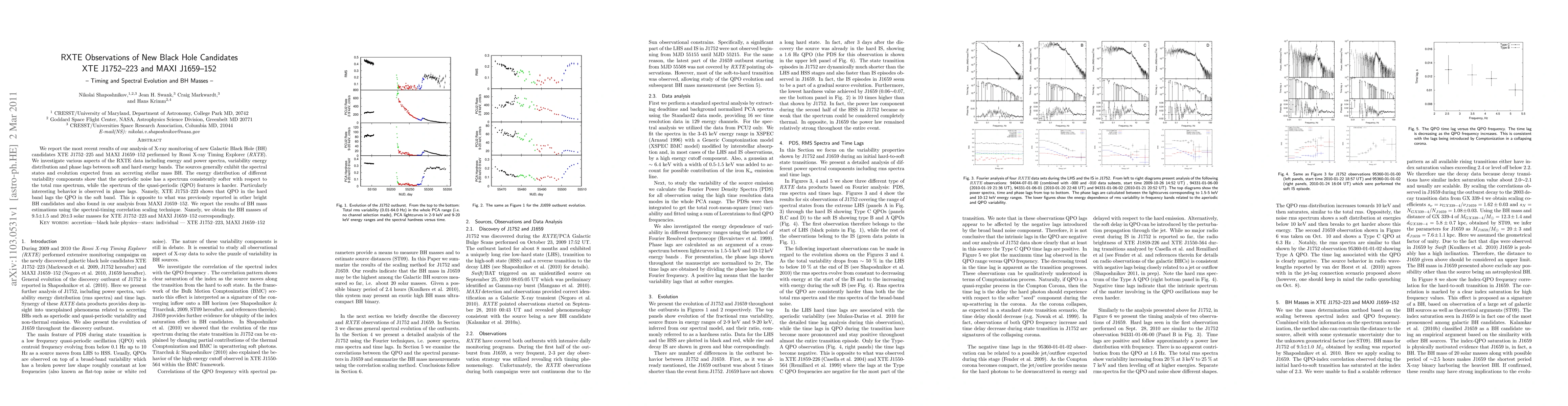 Researchers analyzed X-ray data from two new black hole candidates, XTE J1752-223 and MAXI J1659-152, finding unique phase lags between soft and hard energy bands, which is opposite to previous reports, and estimated BH masses of 9.5 and 20 solar masses respectively.