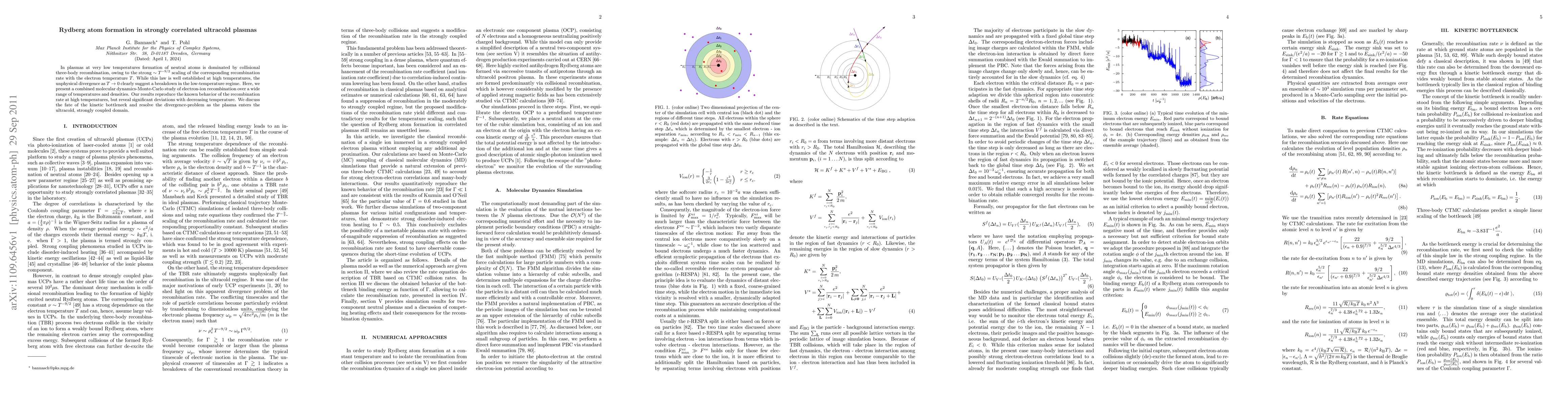This study investigates Rydberg atom formation in ultracold plasmas, revealing significant deviations from established high-temperature recombination laws as temperatures decrease. The research combines molecular dynamics and Monte Carlo simulations to resolve the divergence issue in low-temperature regimes, providing insights into the kinetic bottleneck in strongly correlated ultracold plasmas.