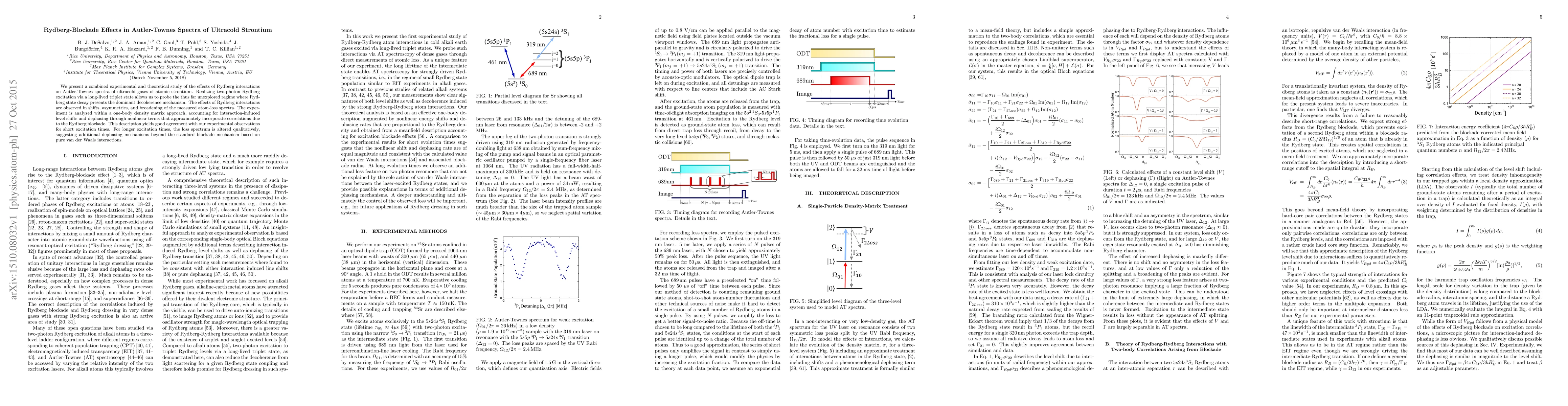This paper investigates Rydberg interactions' impact on Autler-Townes spectra in ultracold strontium gases, revealing shifts, asymmetries, and broadening due to Rydberg blockade effects. Theoretical analysis using a one-body density matrix approach matches short-term experimental observations but suggests additional dephasing mechanisms for longer excitation times.