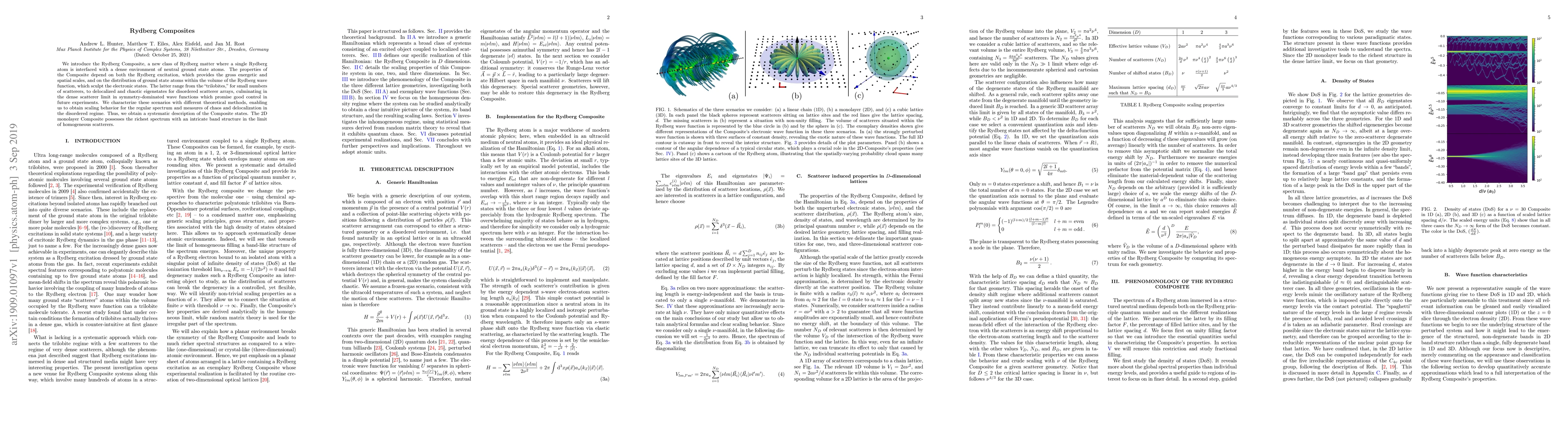 This paper presents Rydberg Composites, a novel type of Rydberg matter formed by a single Rydberg atom interacting with a dense ground state atom environment. The Composite's properties vary based on Rydberg excitation and ground state atom distribution, ranging from structured 'trilobites' to chaotic eigenstates. The study characterizes these scenarios using various theoretical methods, uncovering scaling behaviors and measures of chaos and delocalization, ultimately providing a comprehensive description of Composite states.