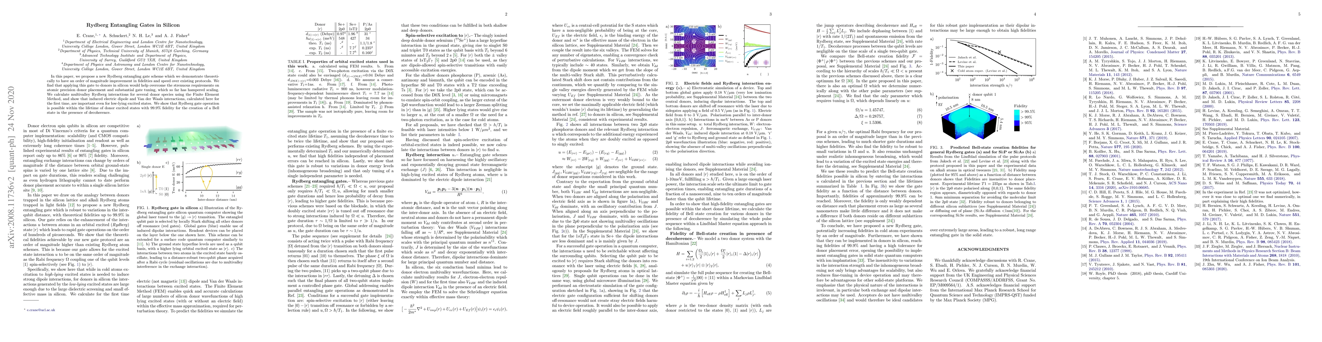 This research introduces a novel Rydberg entangling gate scheme in silicon, theoretically proven to enhance fidelity and speed by an order of magnitude compared to existing methods. It also demonstrates the feasibility of Rydberg gate operations within donor excited state lifetimes for high-fidelity Bell state creation, addressing previous scaling challenges in silicon quantum computing.
