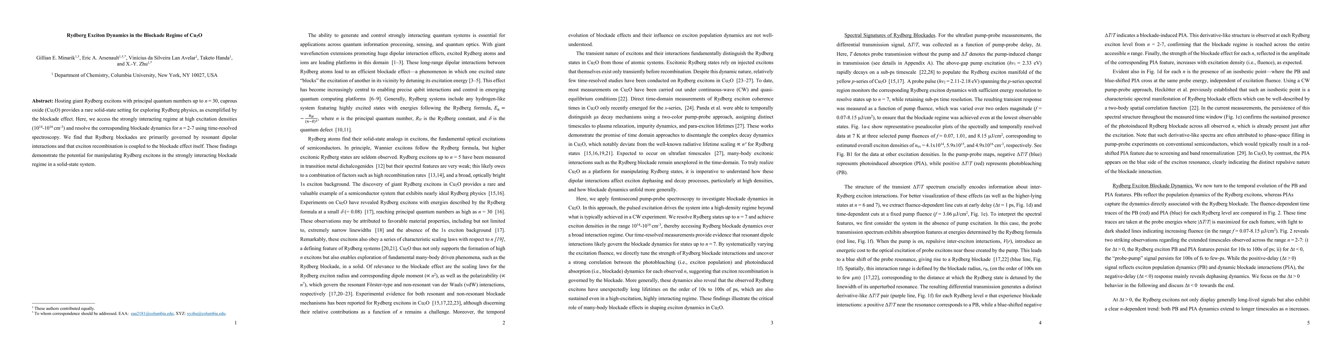 Hosting giant Rydberg excitons with principal quantum numbers up to n = 30, cuprous oxide (Cu2O) provides a rare solid-state setting for exploring Rydberg physics, as exemplified by the blockade effect. Here we access the strongly interaction regime at high excitation densities (10^14-10^16/cm^3) and resolve the corresponding blockade dynamics for n = 2-7 using time-resolved spectroscopy. We find that Rydberg blockades are primarily governed by resonant dipolar interactions and that exciton recombination is coupled to the blockade itself. These findings demonstrate the potential for manipulating Rydberg exctions in the strongly interacting blockade regime in a solid state system.