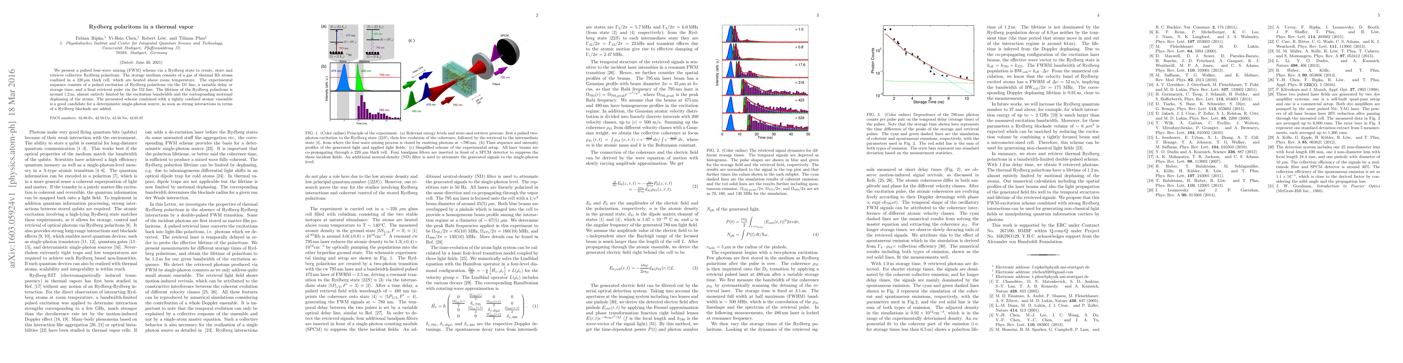 The research employs a pulsed four-wave mixing (FWM) scheme via a Rydberg state to create, store, and retrieve collective Rydberg polaritons using a thermal vapor of rubidium atoms confined in a 220 μm thick cell heated above room temperature.