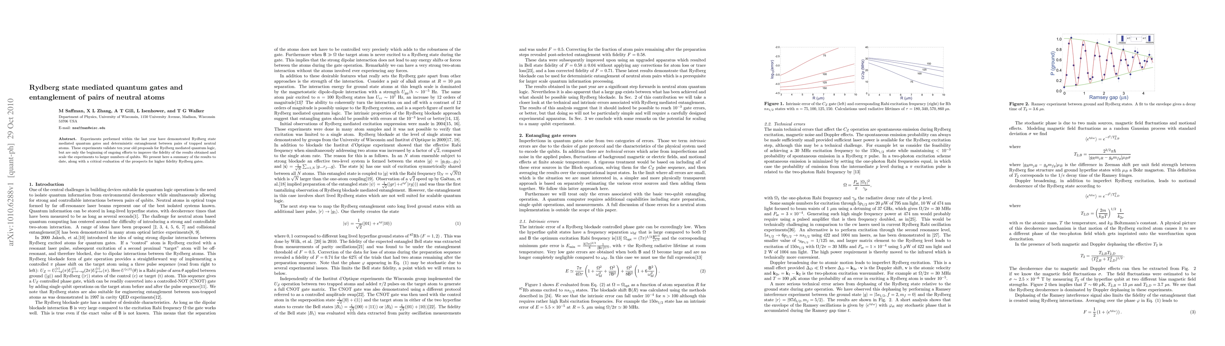 This paper summarizes recent experiments demonstrating Rydberg state mediated quantum gates and entanglement in pairs of trapped neutral atoms, validating long-standing proposals for Rydberg-mediated quantum logic. The study also critically evaluates the potential for enhancing gate fidelity and scaling these experiments to larger qubit systems.