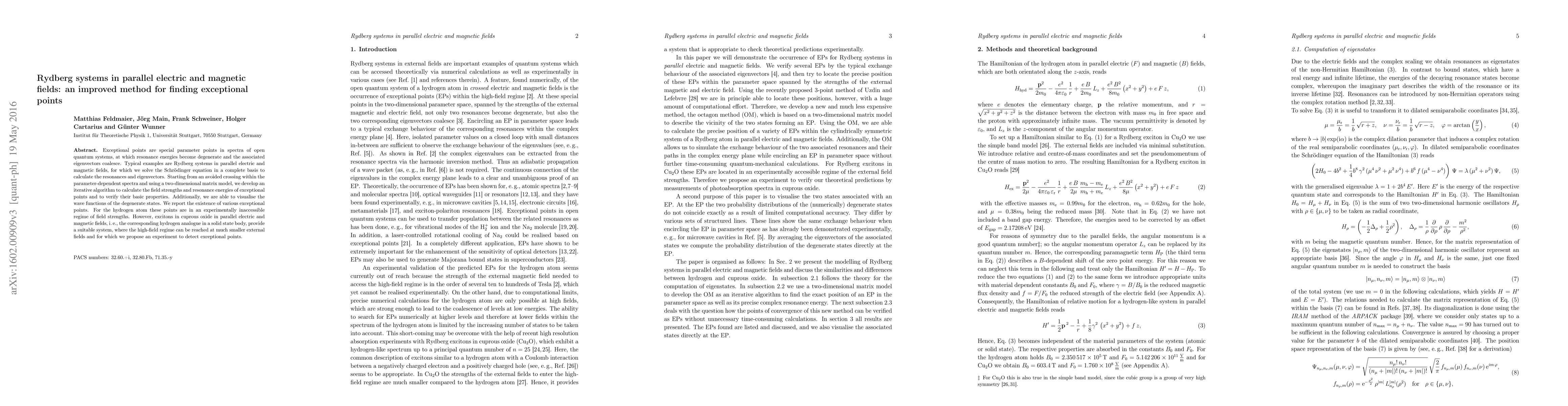Researchers developed an improved method to find exceptional points in Rydberg systems under parallel electric and magnetic fields, enabling the discovery of new resonance energies and visualizing degenerate states.