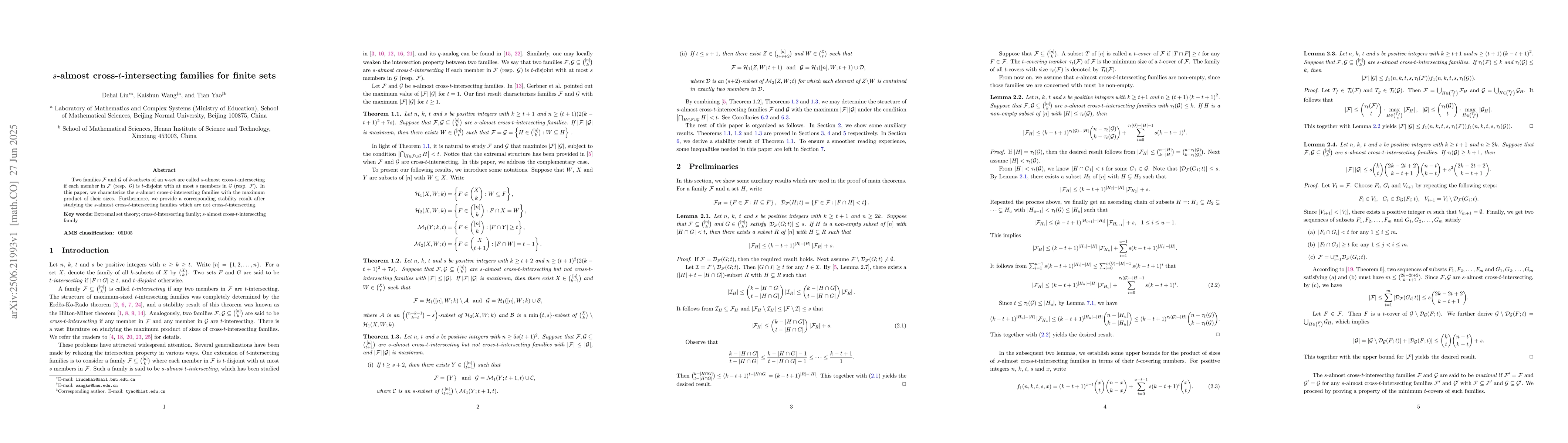 Two families $\mathcal{F}$ and $\mathcal{G}$ of $k$-subsets of an $n$-set are called $s$-almost cross-$t$-intersecting if each member in $\mathcal{F}$ (resp. $\mathcal{G}$) is $t$-disjoint with at most $s$ members in $\mathcal{G}$ (resp. $\mathcal{F}$). In this paper, we characterize the $s$-almost cross-$t$-intersecting families with the maximum product of their sizes. Furthermore, we provide a corresponding stability result after studying the $s$-almost cross-$t$-intersecting families which are not cross-$t$-intersecting.