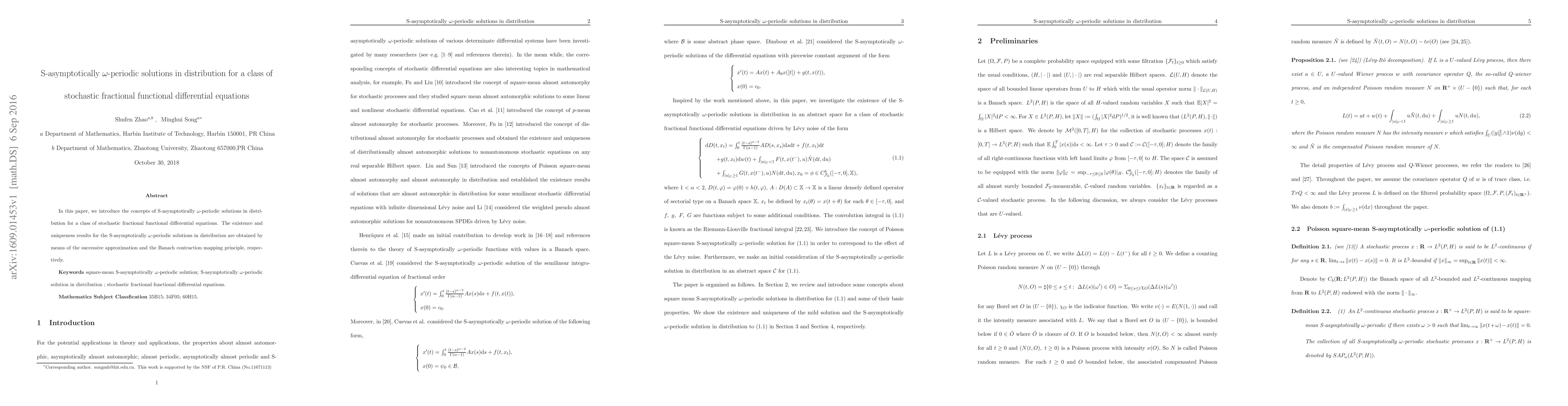This paper introduces the concept of S-asymptotically $\omega$-periodic solutions in distribution for stochastic fractional functional differential equations. It establishes existence and uniqueness of these solutions using successive approximation and the Banach contraction mapping principle.
