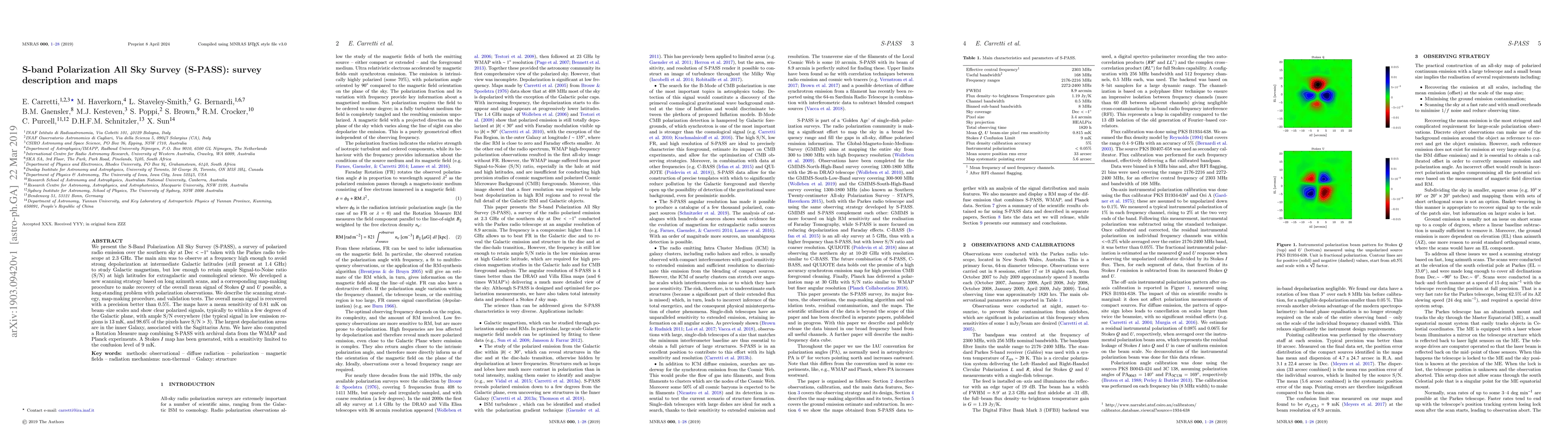 The S-Band Polarization All Sky Survey (S-PASS) maps polarized radio emission over the southern sky at 2.3 GHz, providing clear signals typically within a few degrees of the Galactic plane with high sensitivity.