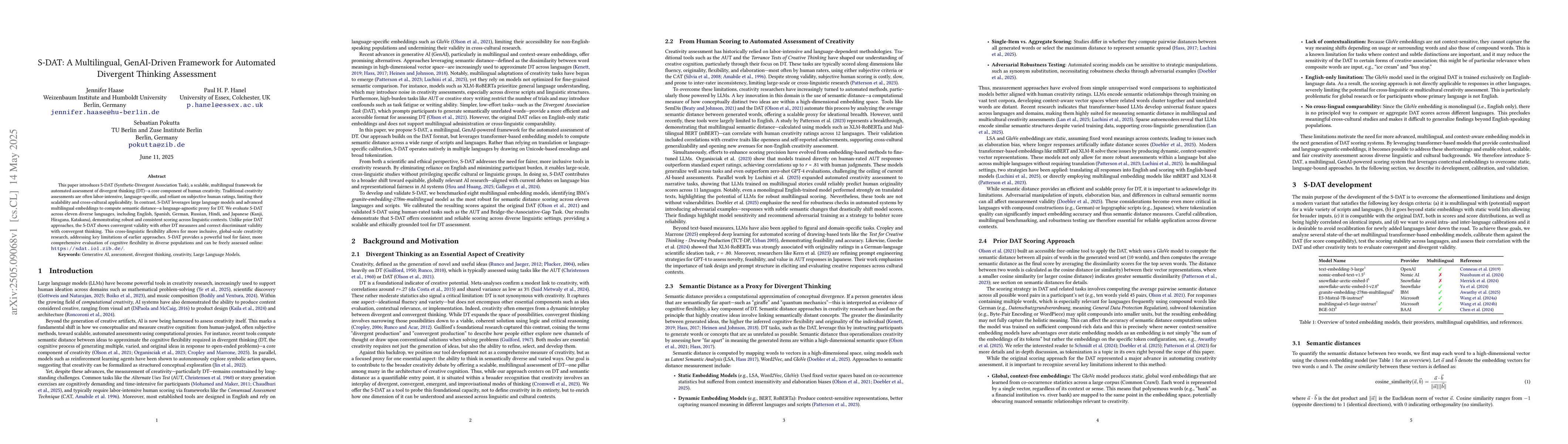 Researchers developed S-DAT, a multilingual framework for automated assessment of divergent thinking, offering a language-agnostic proxy and demonstrating robust cross-linguistic validity.
