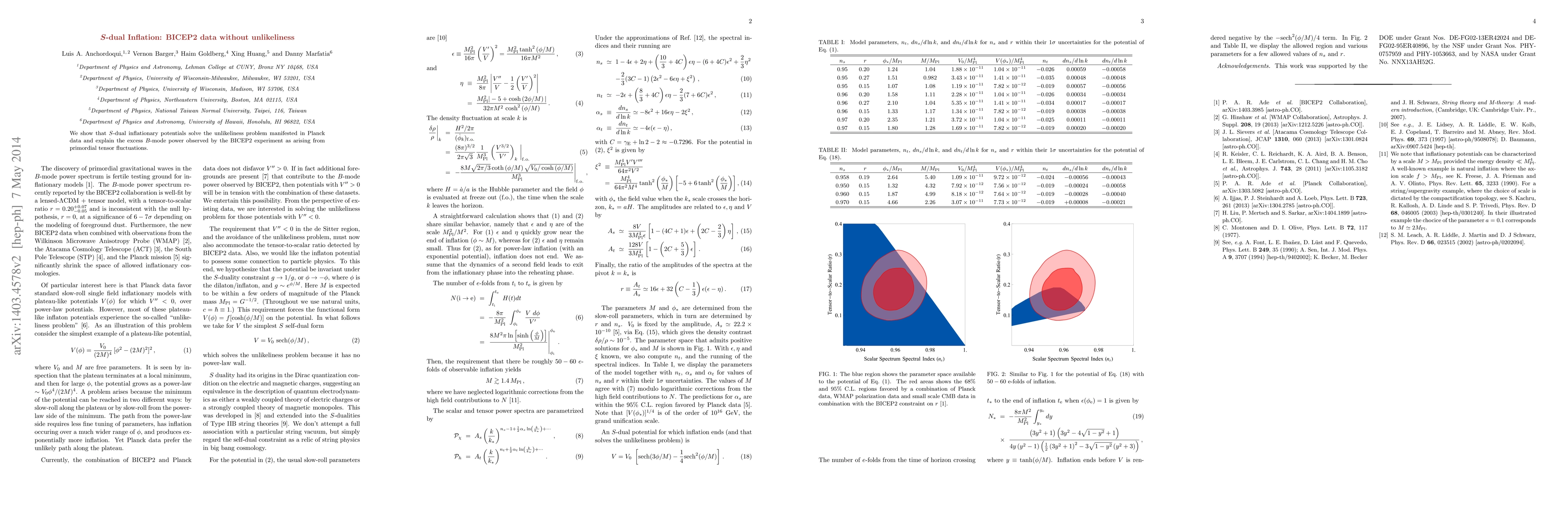We show that S-dual inflationary potentials solve the unlikeliness problem manifested in Planck data and explain the excess B-mode power observed by the BICEP2 experiment as arising from primordial tensor fluctuations.