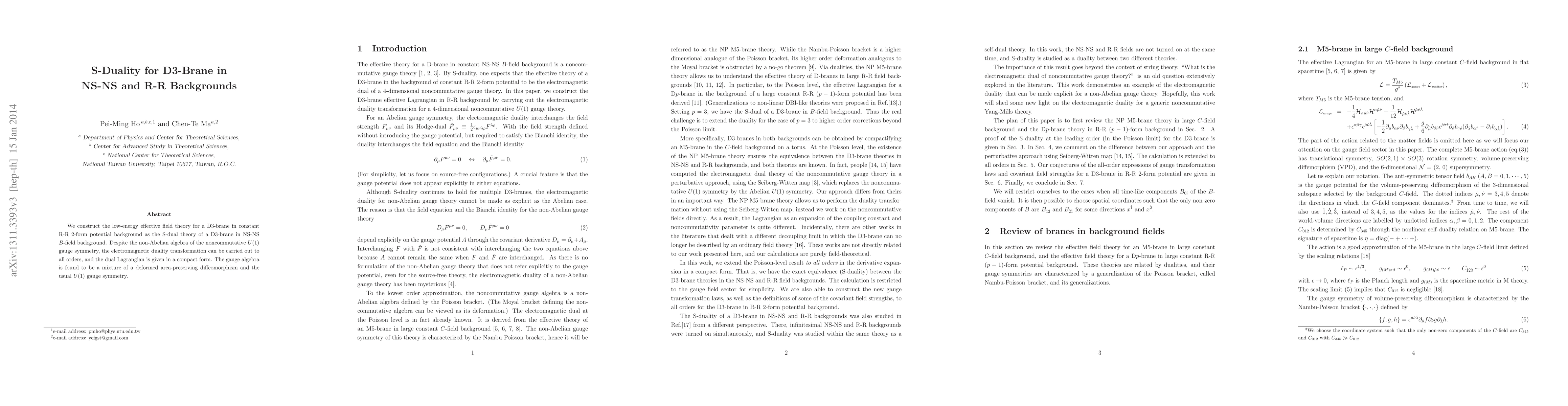 The paper presents a detailed construction and proof of S-duality for D3-branes in both NS-NS and R-R backgrounds, including a novel gauge algebra that combines deformed area-preserving diffeomorphism with U(1) symmetry.
