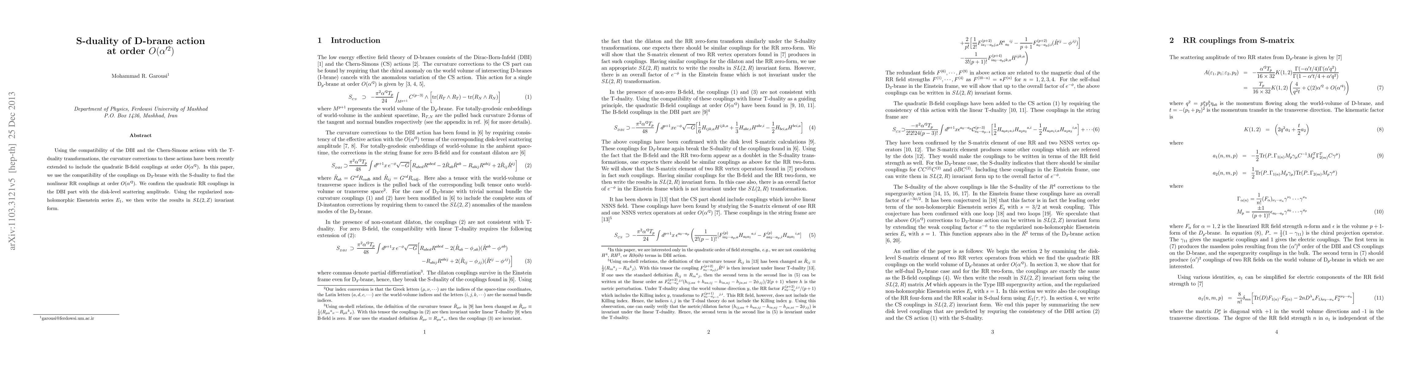 The paper presents a detailed analysis of S-duality for D-brane actions at $O(\alpha'^2)$, incorporating nonlinear RR couplings and expressing results in $SL(2,Z)$ invariant form.