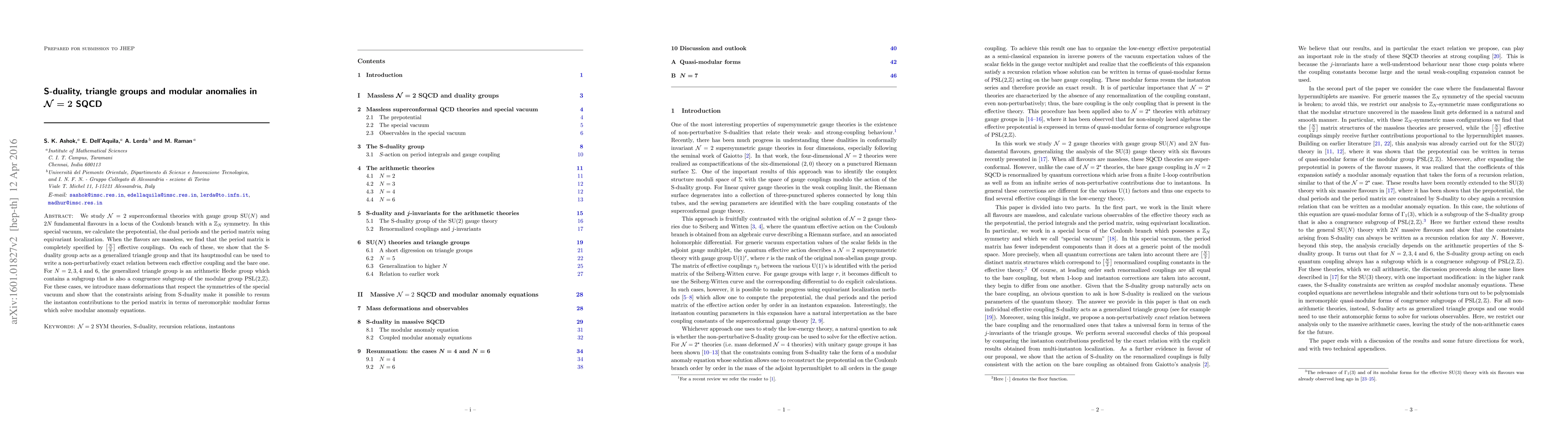 We study N = 2 superconformal theories with gauge group SU(N) and 2N fundamental flavours in a locus of the Coulomb branch with a Z_N symmetry. In this special vacuum, we calculate the prepotential, the dual periods and the period matrix using equivariant localization. When the flavours are massless, we find that the period matrix is completely specified by [N/2] effective couplings. On each of these, we show that the S-duality group acts as a generalized triangle group and that its hauptmodul can be used to write a non-perturbatively exact relation between each effective coupling and the bare one. For N = 2, 3, 4 and 6, the generalized triangle group is an arithmetic Hecke group which contains a subgroup that is also a congruence subgroup of the modular group PSL(2,Z). For these cases, we introduce mass deformations that respect the symmetries of the special vacuum and show that the constraints arising from S-duality make it possible to resum the instanton contributions to the period matrix in terms of meromorphic modular forms which solve modular anomaly equations.