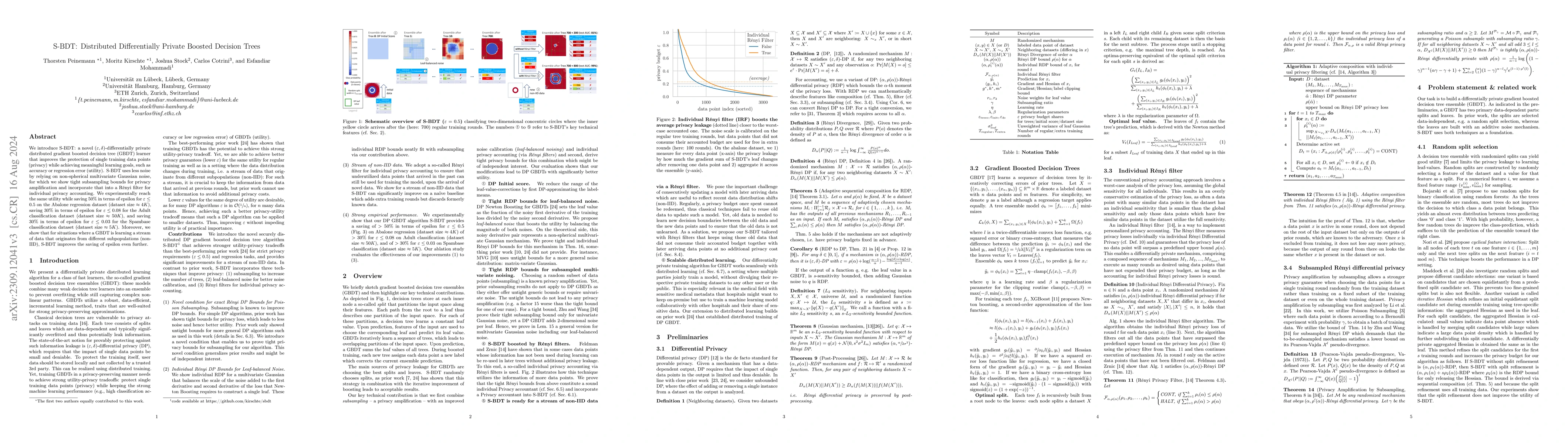This paper introduces S-GBDT, a differentially private gradient boosting decision tree learner that employs advanced techniques to enhance the utility-privacy tradeoff. It achieves significantly better performance compared to prior work, demonstrating strong results on datasets like Abalone and Adult while maintaining differential privacy.