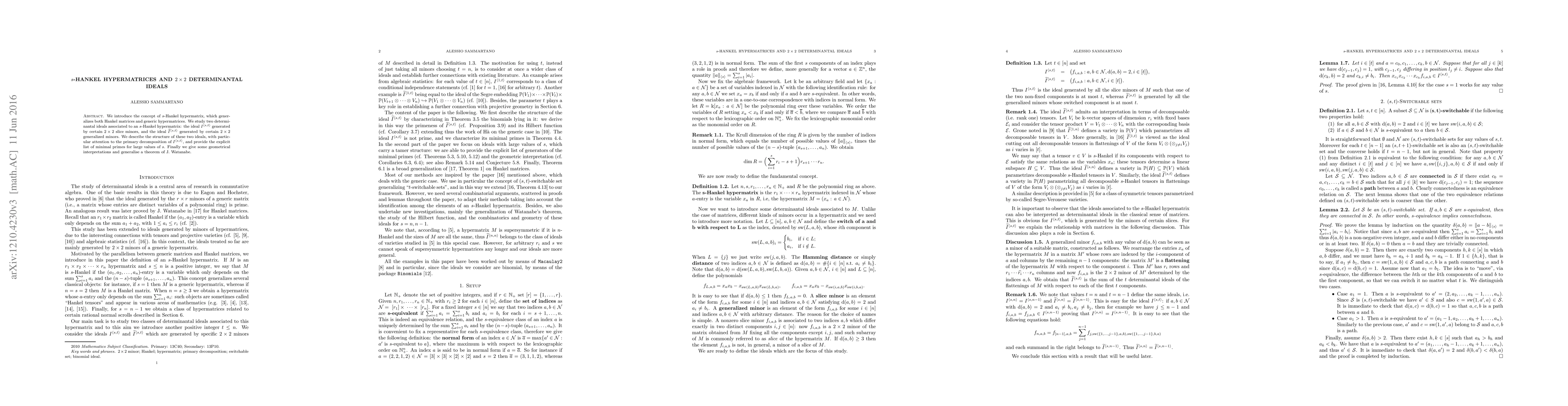 Hankel matrices and generic hypermatrices. We study two determinantal ideals