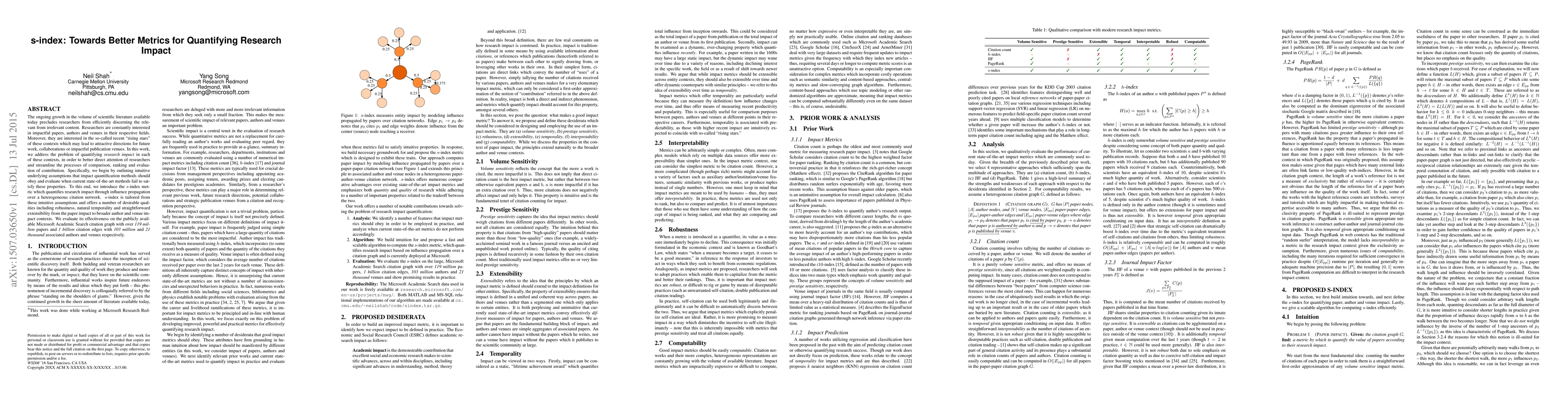 The ongoing growth in the volume of scientific literature available today precludes researchers from efficiently discerning the relevant from irrelevant content. Researchers are constantly interested in impactful papers, authors and venues in their respective fields. Moreover, they are interested in the so-called recent "rising stars" of these contexts which may lead to attractive directions for future work, collaborations or impactful publication venues. In this work, we address the problem of quantifying research impact in each of these contexts, in order to better direct attention of researchers and streamline the processes of comparison, ranking and evaluation of contribution. Specifically, we begin by outlining intuitive underlying assumptions that impact quantification methods should obey and evaluate when current state-of-the-art methods fail to satisfy these properties. To this end, we introduce the s-index metric which quantifies research impact through influence propagation over a heterogeneous citation network. s-index is tailored from these intuitive assumptions and offers a number of desirable qualities including robustness, natural temporality and straightforward extensibility from the paper impact to broader author and venue impact contexts. We evaluate its effectiveness on the publicly available Microsoft Academic Search citation graph with over 119 million papers and 1 billion citation edges with 103 million and 21 thousand associated authors and venues respectively.