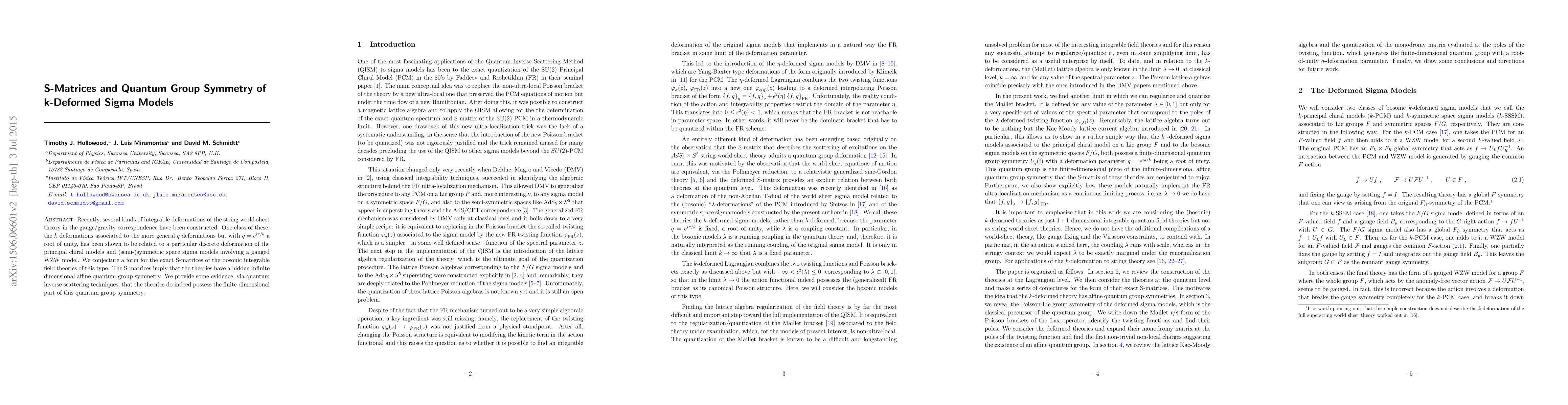 This paper proposes exact S-matrices for k-deformed sigma models, suggesting they exhibit hidden infinite-dimensional affine quantum group symmetry. Evidence supporting the finite-dimensional part of this symmetry is provided through quantum inverse scattering techniques.