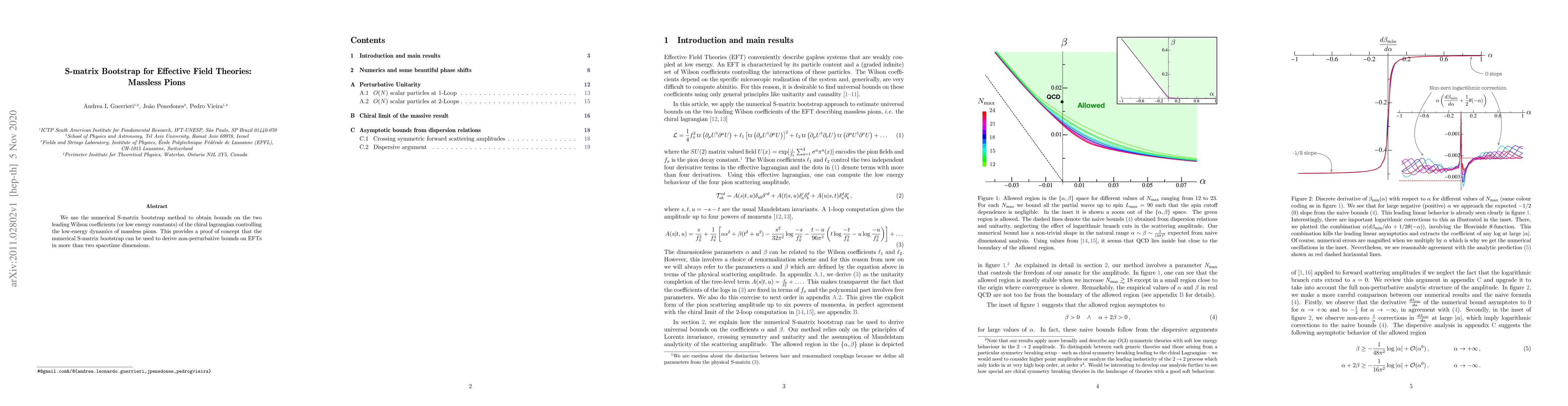 Summary: This paper employs the numerical S-matrix bootstrap method to derive bounds on the leading Wilson coefficients of the chiral Lagrangian governing massless pions, demonstrating the potential of the S-matrix bootstrap for obtaining non-perturbative constraints in effective field theories beyond two dimensions.