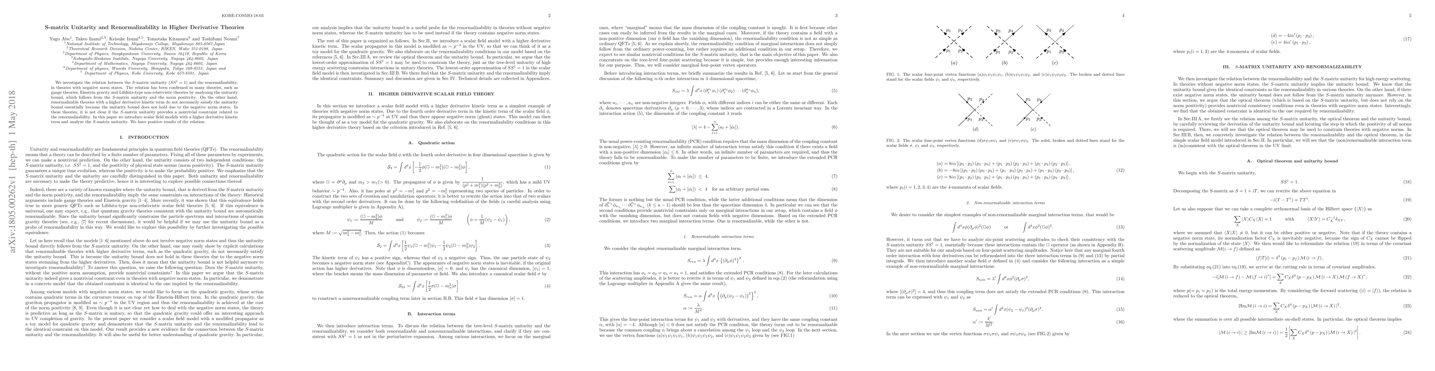 This paper explores the connection between $S$-matrix unitarity and renormalizability in higher derivative theories, particularly focusing on scalar field models. It finds that while unitarity does not necessarily imply renormalizability in the presence of negative norm states, it still provides a nontrivial constraint in these models.