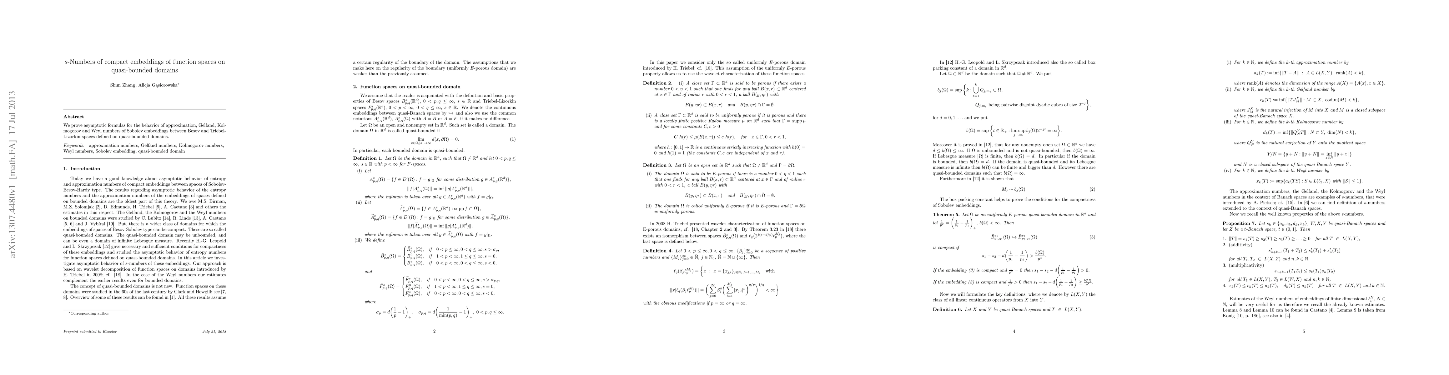 We prove asymptotic formulas for the behavior of approximation, Gelfand, Kolmogorov and Weyl numbers of Sobolev embeddings between Besov and Triebel-Lizorkin spaces defined on quasi-bounded domains.