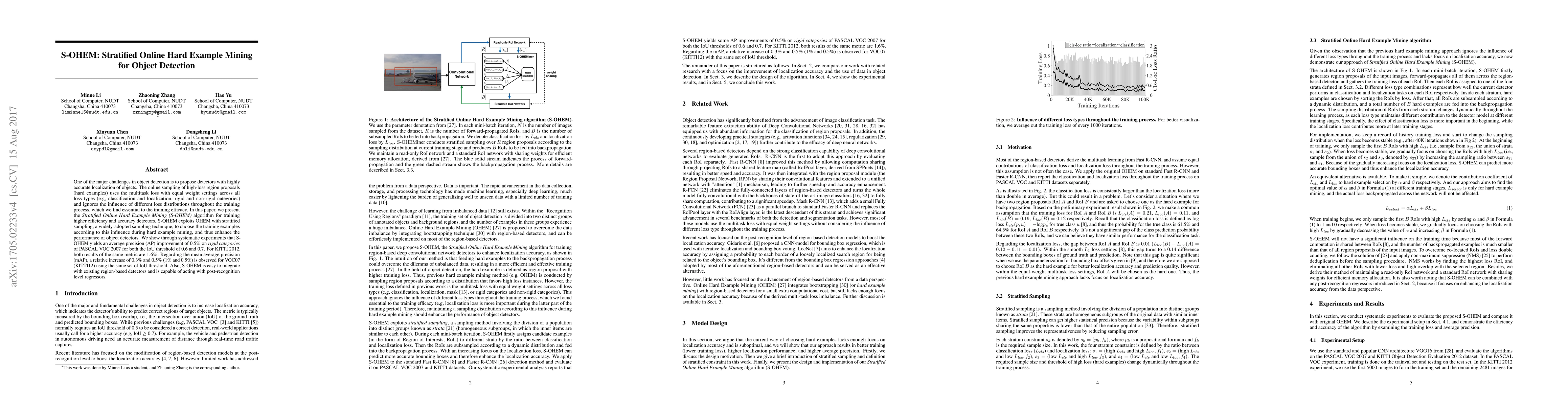 The S-OHEM algorithm enhances object detection accuracy by employing stratified online hard example mining, improving the training efficacy by considering different loss distributions. Experiments show S-OHEM achieves notable improvements in average precision and mean average precision on datasets like PASCAL VOC 2007 and KITTI 2012.