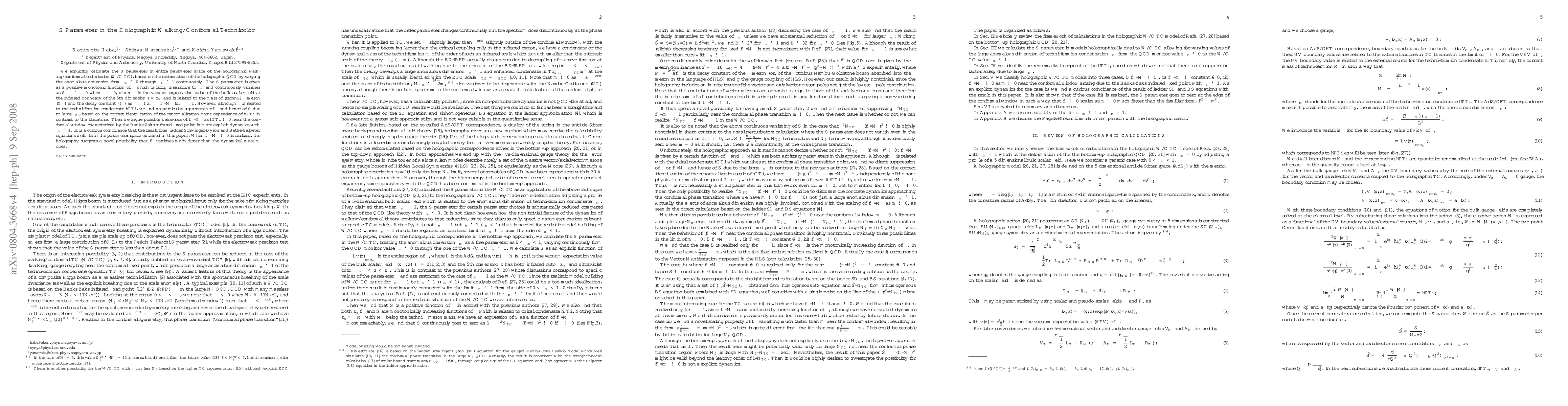 This paper calculates the $S$ parameter in holographic walking/conformal technicolor, finding it as a positive monotonic function of $\xi$ that vanishes as $\xi \to 0$ and is insensitive to $\gamma_m$. The study reveals no suppression of $S$ due to large $\gamma_m$, despite $\xi$'s relation to the techni-fermion condensate.
