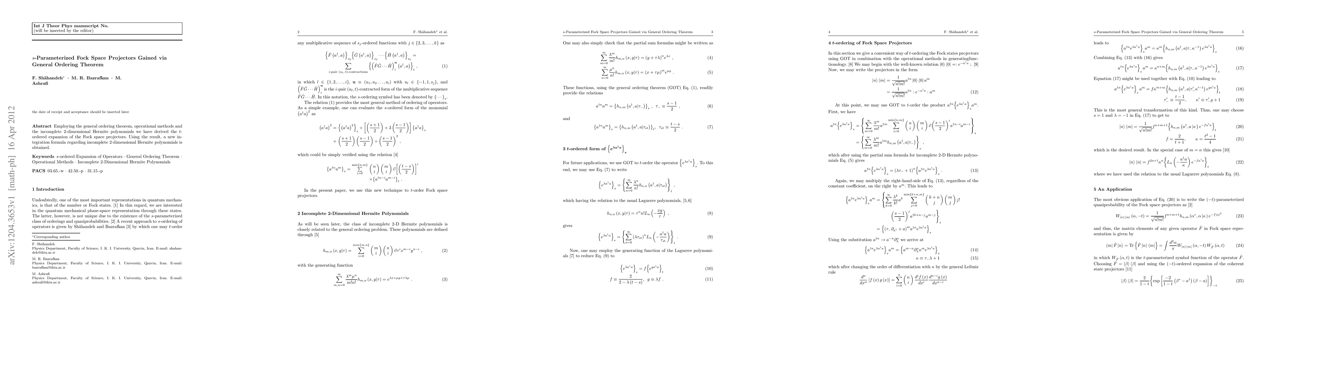 Researchers used the general ordering theorem to derive a new method for expanding Fock space projectors, leading to a novel integration formula involving incomplete 2-dimensional Hermite polynomials.