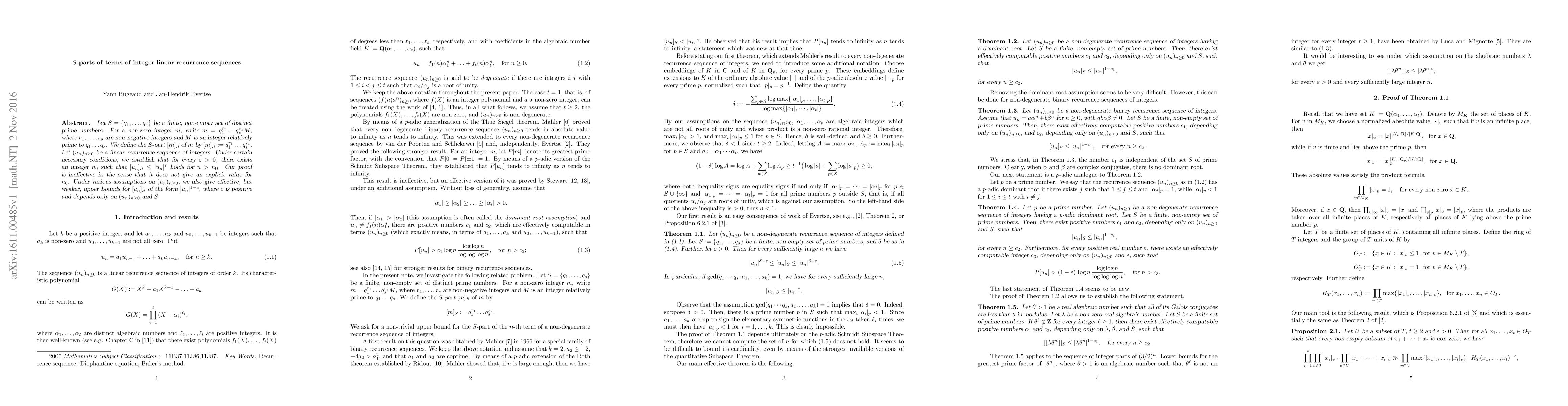 This research paper establishes that for integer linear recurrence sequences, there exists an integer n0 such that the S-part of the sequence is bounded above by a function of its magnitude, with certain conditions met.