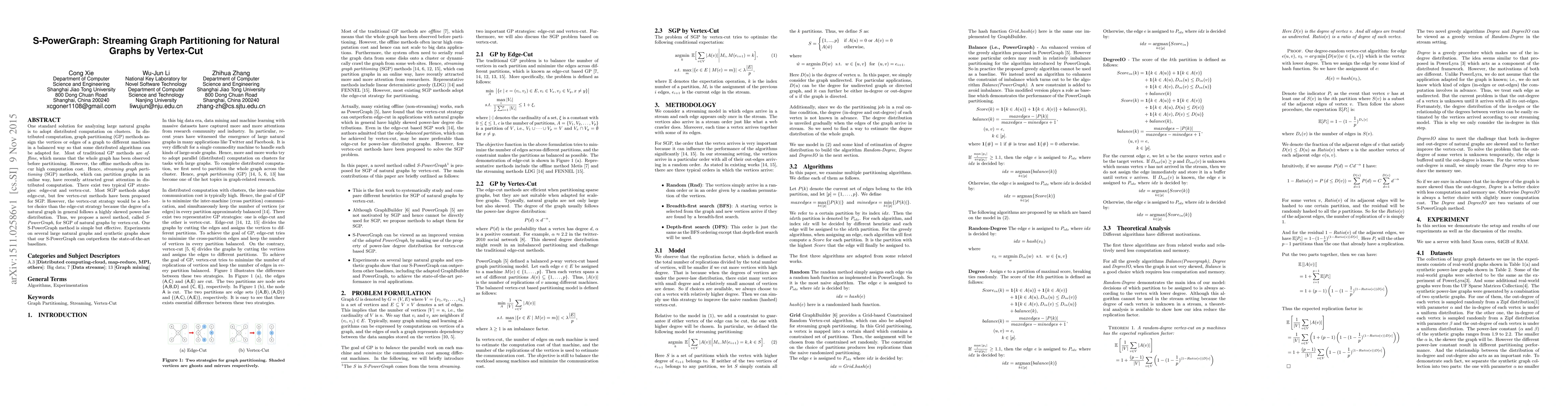 The paper proposes S-PowerGraph, a novel streaming graph partitioning method for natural graphs using vertex-cut, which is more effective than edge-cut due to the skewed power-law distribution of vertex degrees. Experimental results demonstrate S-PowerGraph's superior performance over existing state-of-the-art methods.