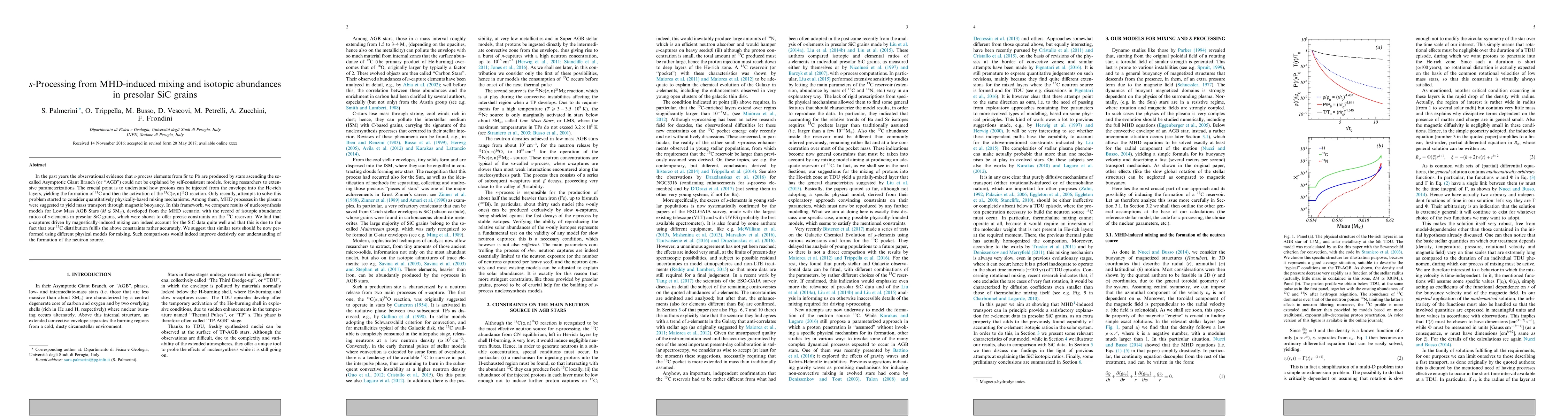 In the past years the observational evidence that s-process elements from Sr to Pb are produced by stars ascending the socalled Asymptotic Giant Branch (or AGB) could not be explained by self-consistent models, forcing researchers to extensive parameterizations. The crucial point is to understand how protons can be injected from the envelope into the He-rich layers, yielding the formation of 13C and then the activation of the 13C(a,n)16O reaction. Only recently, attempts to solve this problem started to consider quantitatively physically-based mixing mechanisms. Among them, MHD processes in the plasma were suggested to yield mass transport through magnetic buoyancy. In this framework, we compare results of nucleosynthesis models for Low Mass AGB Stars (M<=3Mo), developed from the MHD scenario, with the record of isotopic abundance ratios of s-elements in presolar SiC grains, which were shown to offer precise constraints on the 13C reservoir. We find that n-captures driven by magnetically-induced mixing can indeed account for the SiC data quite well and that this is due to the fact that our 13C distribution fulfils the above constraints rather accurately. We suggest that similar tests should be now performed using different physical models for mixing. Such comparisons would indeed improve decisively our understanding of the formation of the neutron source.