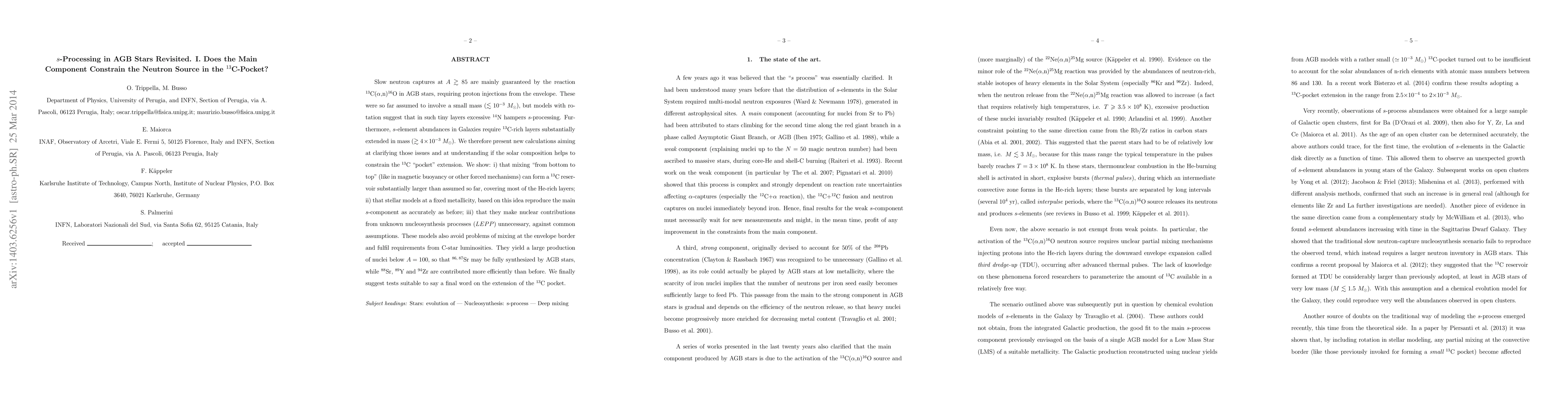 Slow neutron captures at A$\gtrsim$ 85 are mainly guaranteed by the reaction 13C($\alpha$,n)16O in AGB stars, requiring proton injections from the envelope. These were so far assumed to involve a small mass ($\lesssim 10^{-3}$ M$_{\odot}$), but models with rotation suggest that in such tiny layers excessive 14N hampers s-processing. Furthermore, s-element abundances in Galaxies require 13C-rich layers substantially extended in mass ($\gtrsim 4 \times 10^{-3}$ M$_{\odot}$). We therefore present new calculations aiming at clarifying those issues and at understanding if the solar composition helps to constrain the 13C "pocket" extension. We show: i) that mixing "from bottom to top" (like in magnetic buoyancy or other forced mechanisms) can form a 13C reservoir substantially larger than assumed so far, covering most of the He-rich layers; ii) that stellar models at a fixed metallicity, based on this idea reproduce the main s-component as accurately as before; iii) that they make nuclear contributions from unknown nucleosynthesis processes (LEPP) unnecessary, against common assumptions. These models also avoid problems of mixing at the envelope border and fulfil requirements from C-star luminosities. They yield a large production of nuclei below A = 100, so that 86,87Sr may be fully synthesized by AGB stars, while 88Sr, 89Y and 94Zr are contributed more efficiently than before. We finally suggest tests suitable to say a final word on the extension of the 13C pocket.