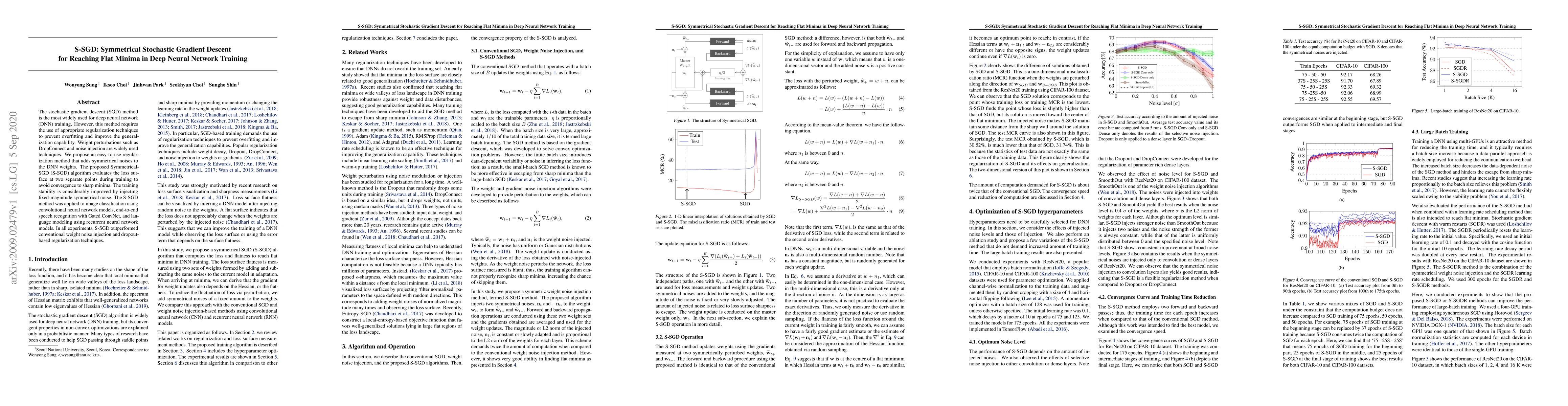 The paper introduces S-SGD, a symmetrical stochastic gradient descent method with weight noise injection to achieve flat minima in deep neural networks, demonstrating superior performance over conventional SGD and previous weight-noise methods, especially in large batch training scenarios.