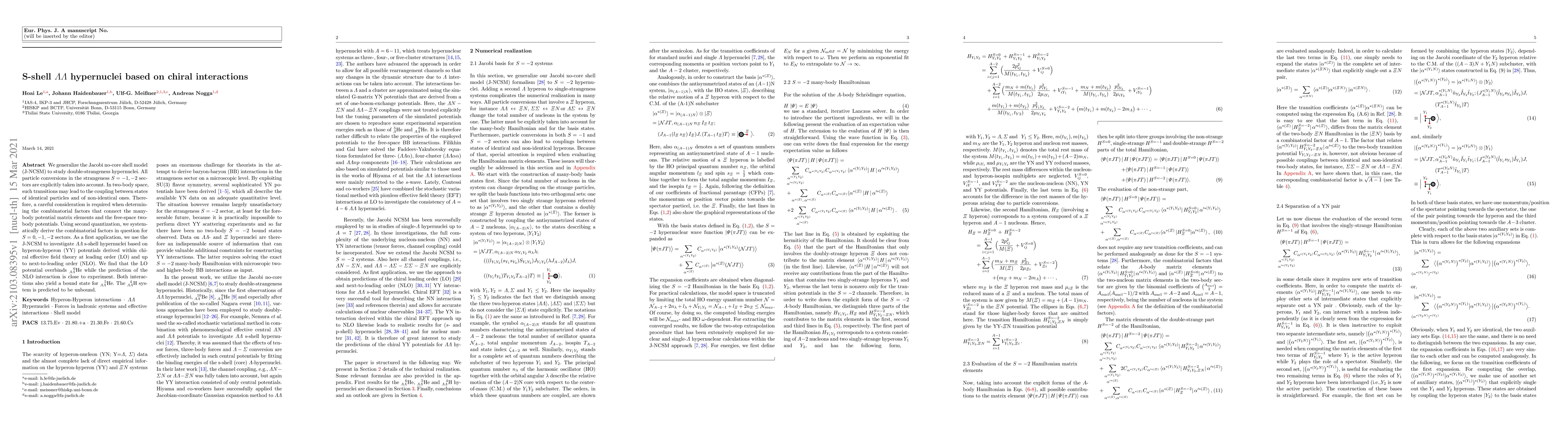 We generalize the Jacobi no-core shell model (J-NCSM) to study double-strangeness hypernuclei. All particle conversions in the strangeness $S=-1,-2$ sectors are explicitly taken into account. In two-body space, such transitions may lead to the coupling between states of identical particles and of non-identical ones. Therefore, a careful consideration is required when determining the combinatorial factors that connect the many-body potential matrix elements and the free-space two-body potentials. Using second quantization, we systematically derive the combinatorial factors in question for $S=0,-1,-2$ sectors. As a first application, we use the J-NCSM to investigate $\Lambda \Lambda$ s-shell hypernuclei based on hyperon-hyperon (YY) potentials derived within chiral effective field theory at leading order (LO) and up to next-to-leading order (NLO). We find that the LO potential overbinds $^{\text{ }\text{ }\text{ } \text{}6}_{\Lambda \Lambda}\text{He}$ while the prediction of the NLO interaction is close to experiment. Both interactions also yield a bound state for $^{\text{ }\text{ }\text{ } \text{}5}_{\Lambda \Lambda}\text{He}$. The $^{\text{}\text{ }\text{ }\text{}4}_{\Lambda \Lambda}\text{H}$ system is predicted to be unbound.