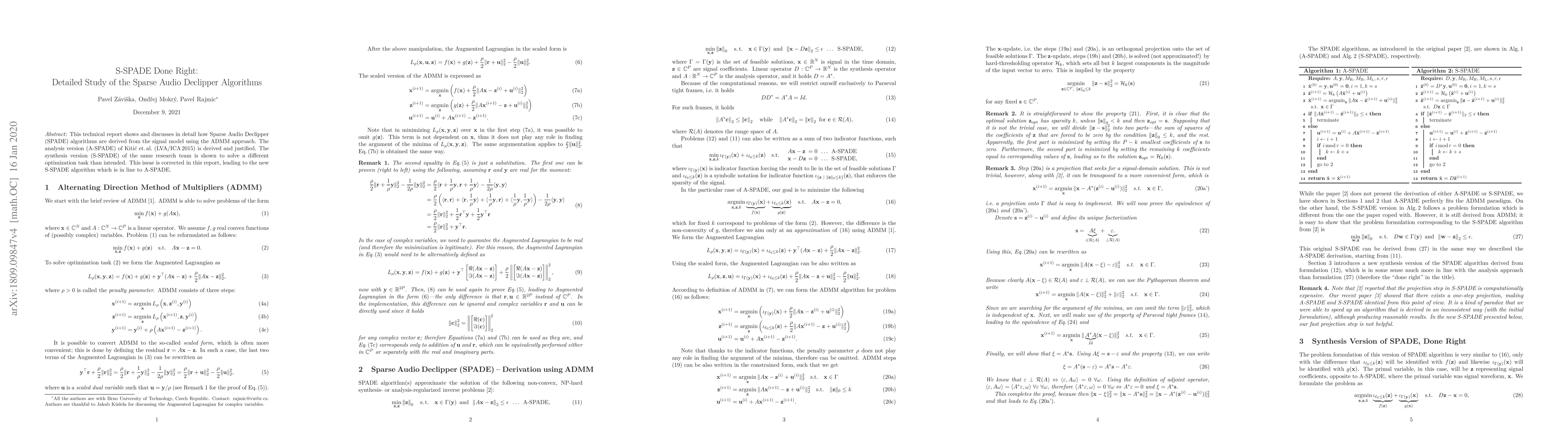 A new audio declipper algorithm called S-SPADE is derived from a signal model using the ADMM approach, improving upon an earlier version with correct optimization tasks.