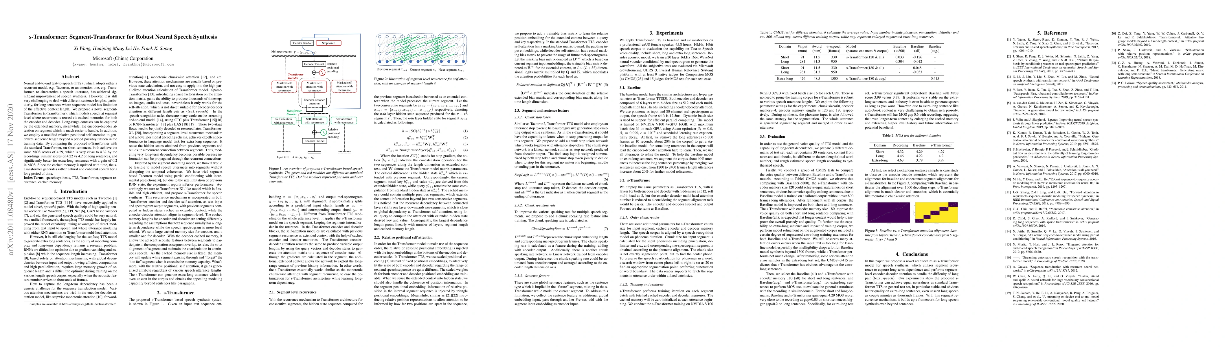 The s-Transformer model addresses the limitations of sequence models in neural text-to-speech systems by segmenting speech and utilizing cached memories for both encoder and decoder, achieving better performance on long sentences and extra-long sequences compared to the standard Transformer.