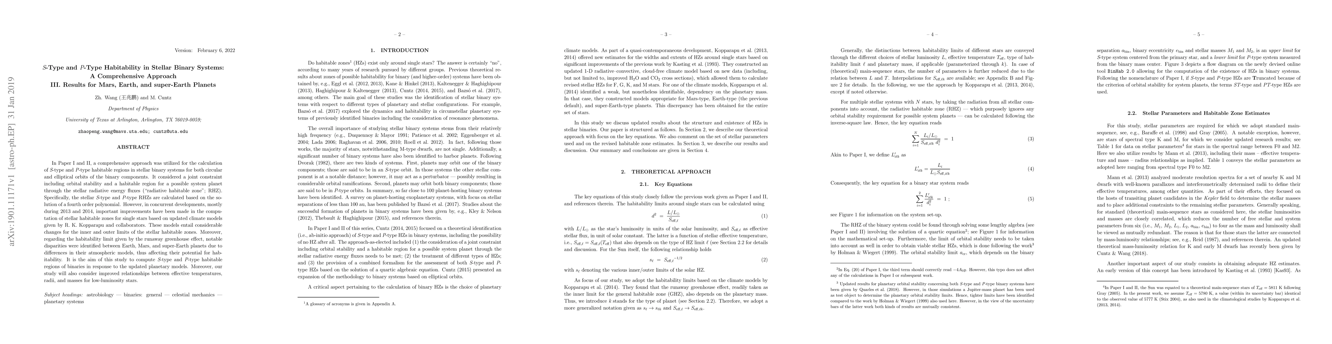 This paper computes updated S-type and P-type habitable regions for Mars, Earth, and super-Earth planets in stellar binary systems, incorporating recent advancements in climate models and stellar habitable zone definitions. The study also refines the relationships between effective temperatures, radii, and masses of low-luminosity stars to better assess planetary habitability.
