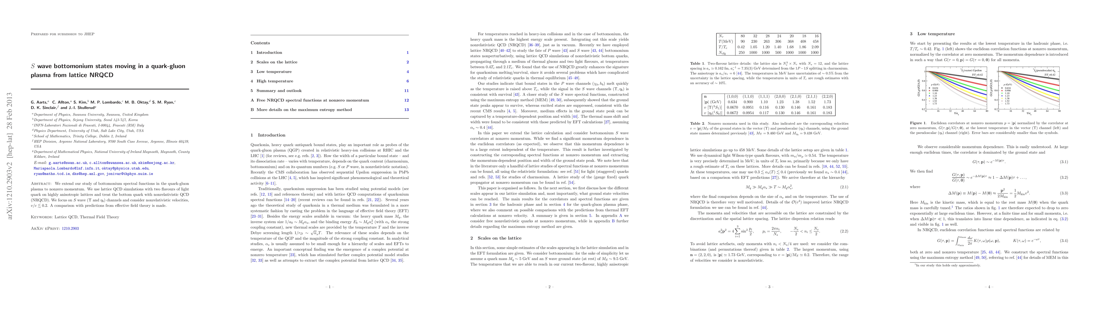 We extend our study of bottomonium spectral functions in the quark-gluon plasma to nonzero momentum. We use lattice QCD simulations with two flavours of light quark on highly anisotropic lattices and treat the bottom quark with nonrelativistic QCD (NRQCD). We focus on S wave (Upsilon and eta_b) channels and consider nonrelativistic velocities, v/c < 0.2. A comparison with predictions from effective field theory is made.