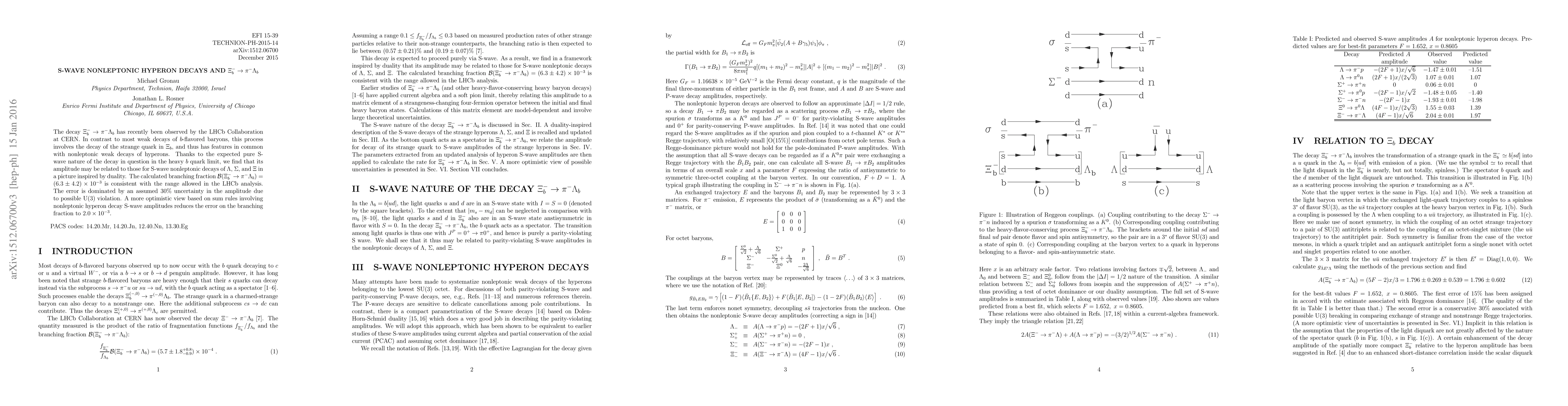 The decay $\Xi^-_b \to \pi^- \Lambda_b$ has recently been observed by the LHCb Collaboration at CERN. In contrast to most weak decays of $b$-flavored baryons, this process involves the decay of the strange quark in $\Xi_b$, and thus has features in common with nonleptonic weak decays of hyperons. Thanks to the expected pure S-wave nature of the decay in question in the heavy $b$ quark limit, we find that its amplitude may be related to those for S-wave nonleptonic decays of $\Lambda$, $\Sigma$, and $\Xi$ in a picture inspired by duality. The calculated branching fraction ${\cal B}(\Xi^-_b \to \pi^- \Lambda_b) = (6.3 \pm 4.2) \times 10^{-3}$ is consistent with the range allowed in the LHCb analysis. The error is dominated by an assumed 30\% uncertainty in the amplitude due to possible U(3) violation. A more optimistic view based on sum rules involving nonleptonic hyperon decay S-wave amplitudes reduces the error on the branching fraction to $2.0 \times 10^{-3}$.