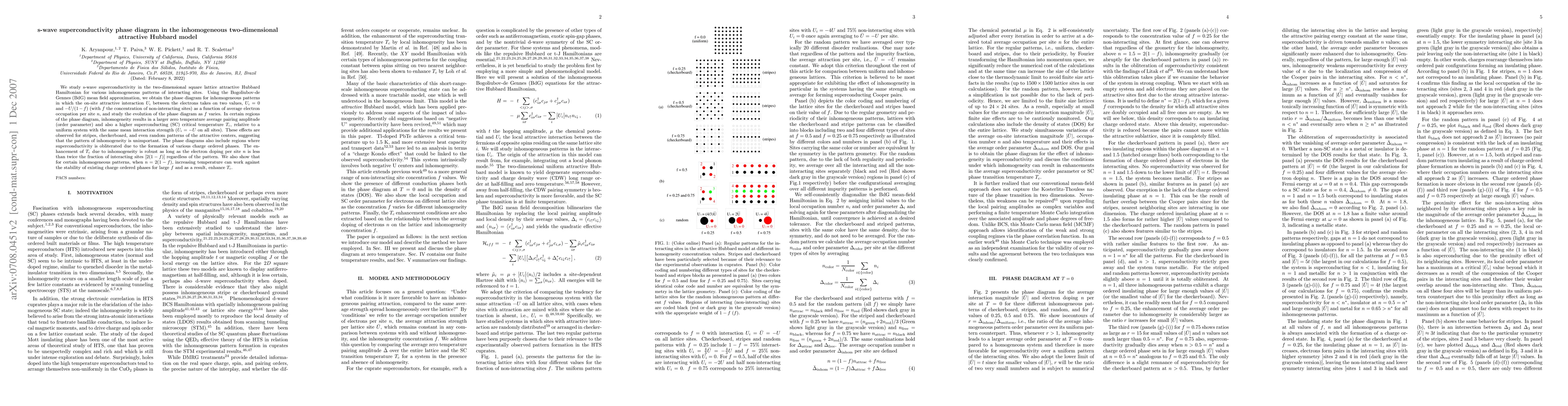 This paper investigates s-wave superconductivity in the two-dimensional attractive Hubbard model under various inhomogeneous patterns. The study reveals that inhomogeneity can enhance the superconducting critical temperature T_c and the pairing amplitude, regardless of the pattern, as long as the electron doping remains below a certain threshold.