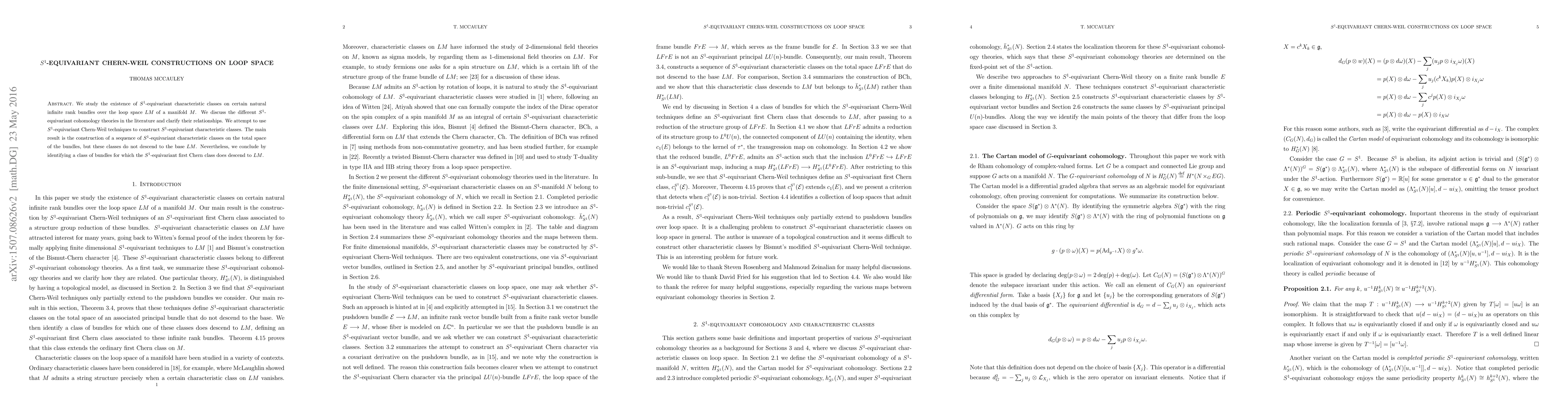 Researchers studied the existence of $S^1$-equivariant characteristic classes on loop space bundles and developed a sequence of classes that do not descend to the base but identify a specific class that does.