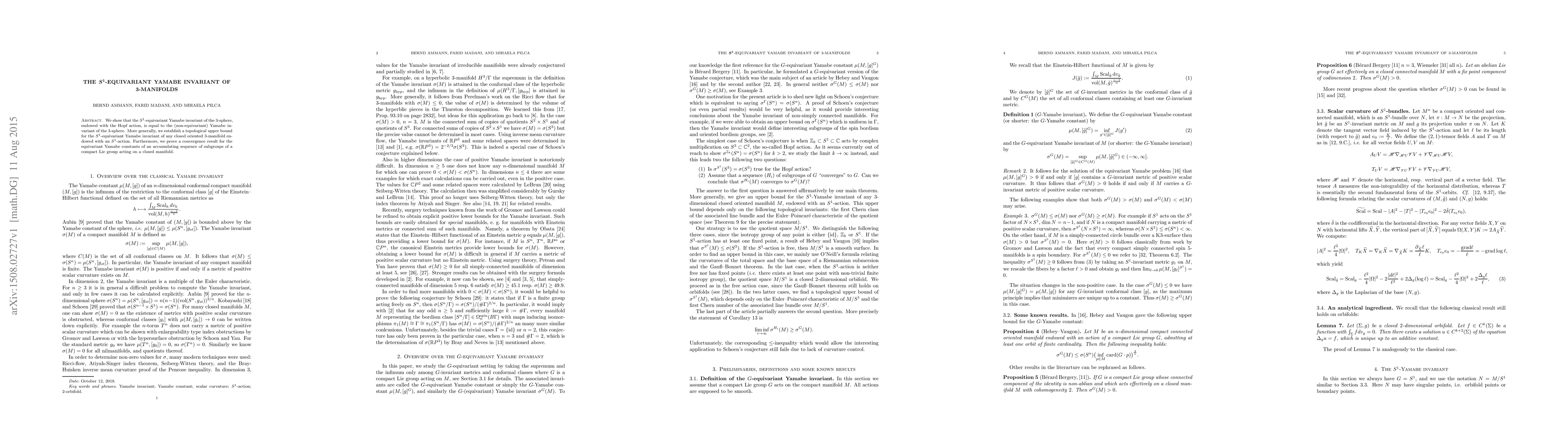 Researchers show that the S^1-equivariant Yamabe invariant of 3-manifolds equals the non-equivariant Yamabe invariant for the 3-sphere, establishing a topological upper bound for equivariant invariants.