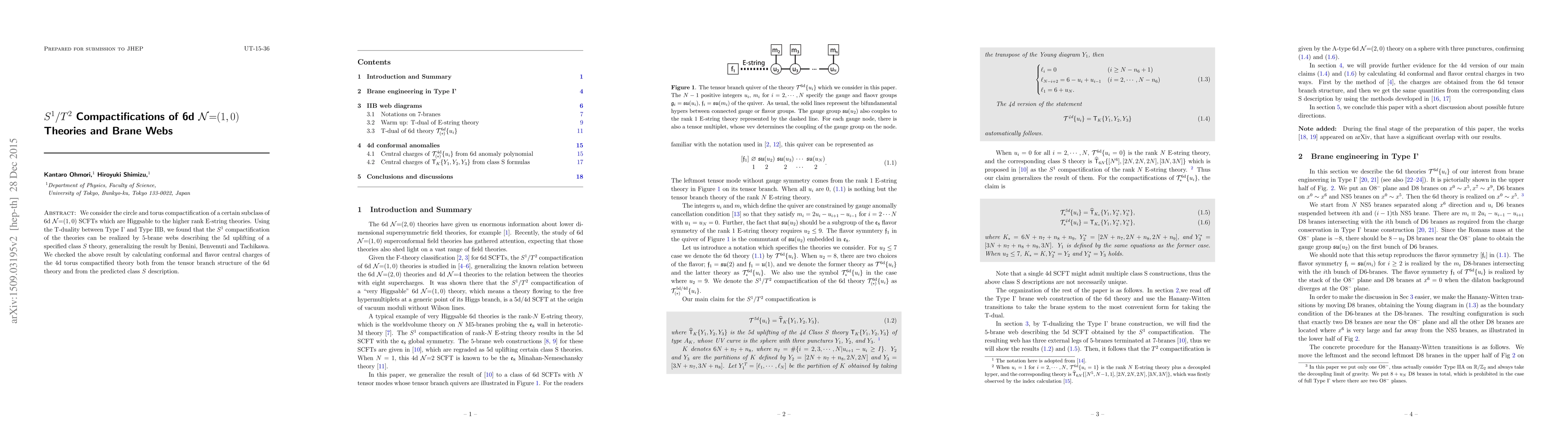 This paper explores circle and torus compactifications of a specific subclass of 6d $\mathcal{N}=(1,0)$ SCFTs, showing they relate to higher rank E-string theories. It utilizes T-duality to demonstrate that $S^1$ compactifications can be represented by 5-brane webs, thus uplifting a class S theory in 5 dimensions. The findings are validated by calculating the conformal and flavor central charges of the 4d torus-compactified theory.