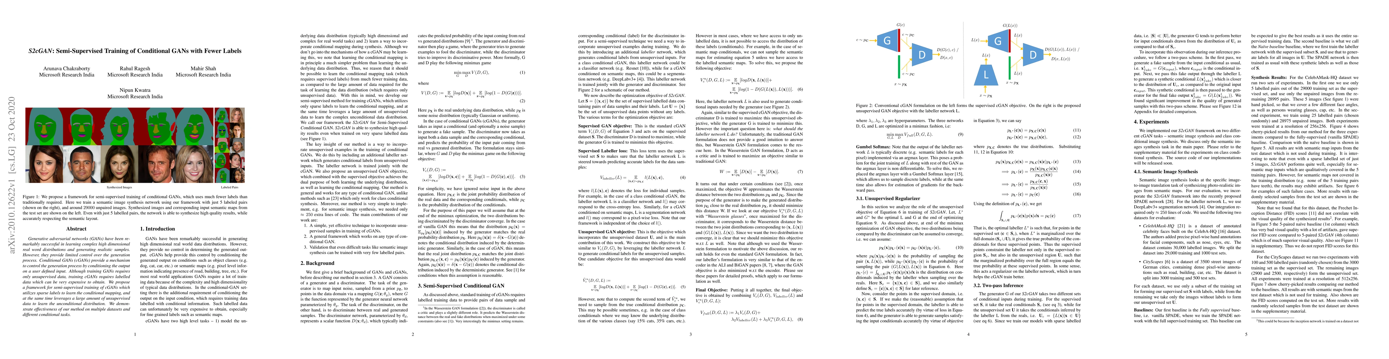 Title: S2cGAN: Semi-Supervised Training of Conditional GANs with Fewer Labels Summary: This paper proposes a semi-supervised training framework for conditional GANs (cGANs) that uses sparse labels to learn conditional mappings while leveraging large amounts of unlabeled data to learn the unconditional distribution, demonstrating effectiveness across various datasets and tasks.