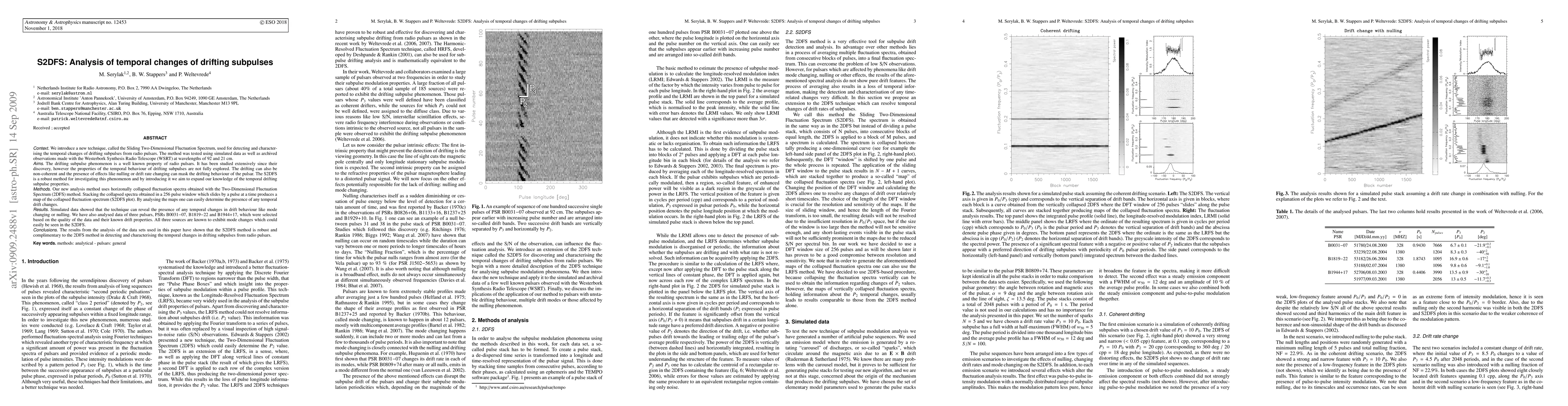 The research introduces the Sliding Two-Dimensional Fluctuation Spectrum (S2DFS) method, which is tested using simulated data and archived observations from the WSRT at 92 and 21 cm wavelengths to detect and characterize temporal changes in drifting subpulses from radio pulsars.